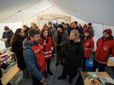 Міністерка закордонних справ Австрії відвідала теплопункт Українського Червоного Хреста у Києві