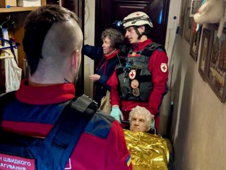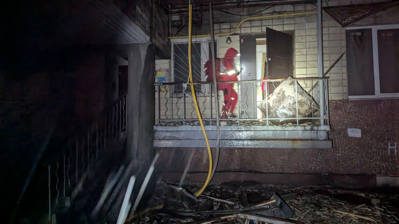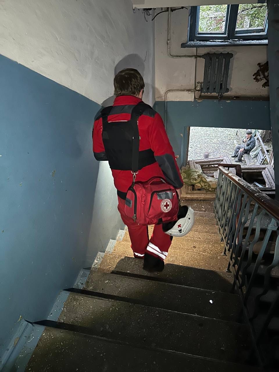 Emergency response team volunteers from the National Committee of the Ukrainian Red Cross were deployed to the affected areas in Kyiv. They carried out door-to-door checks in a damaged residential building to identify those in need. First aid was provided to one injured person.