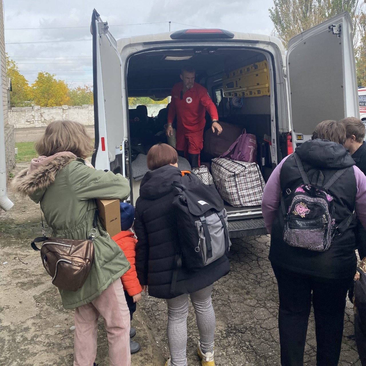 This week, the Ukrainian Red Cross emergency response team in the Donetsk region, together with the Bilyi Yanhol (White Angel) unit, evacuated two families from Druzhkivka to the Cherkasy region. Among those evacuated were five children.