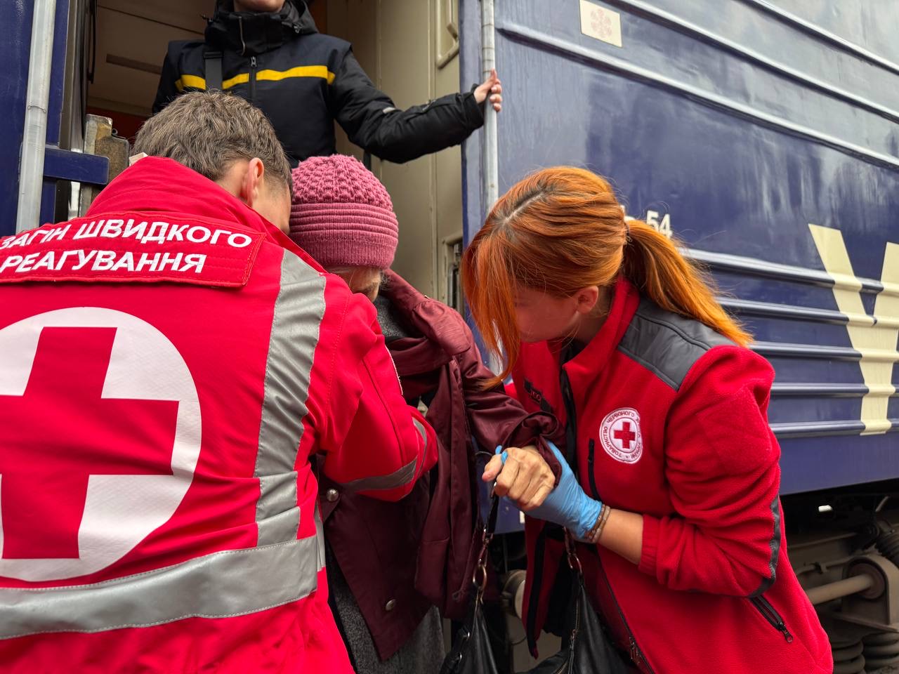 Ukrainian Red Cross Assists Evacuees Arriving by Train in Zhytomyr Region