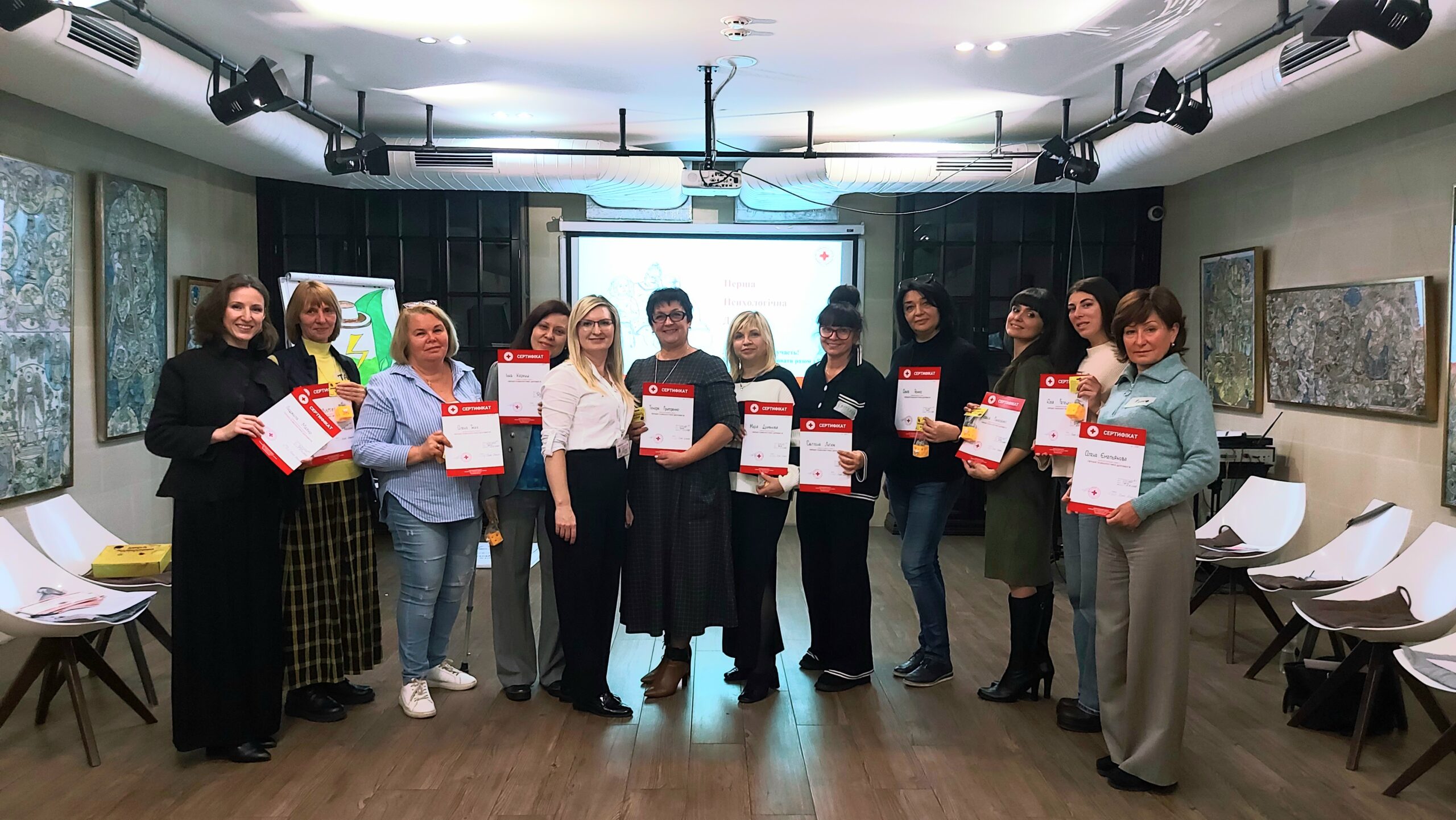 The trainings were delivered by trainers from the Mental Health and Psychosocial Support (MHPSS) unit of the Ukrainian Red Cross. Through practical exercises, role plays, and group discussions, participants strengthened their knowledge and developed the skills needed to provide effective support to people in distress.