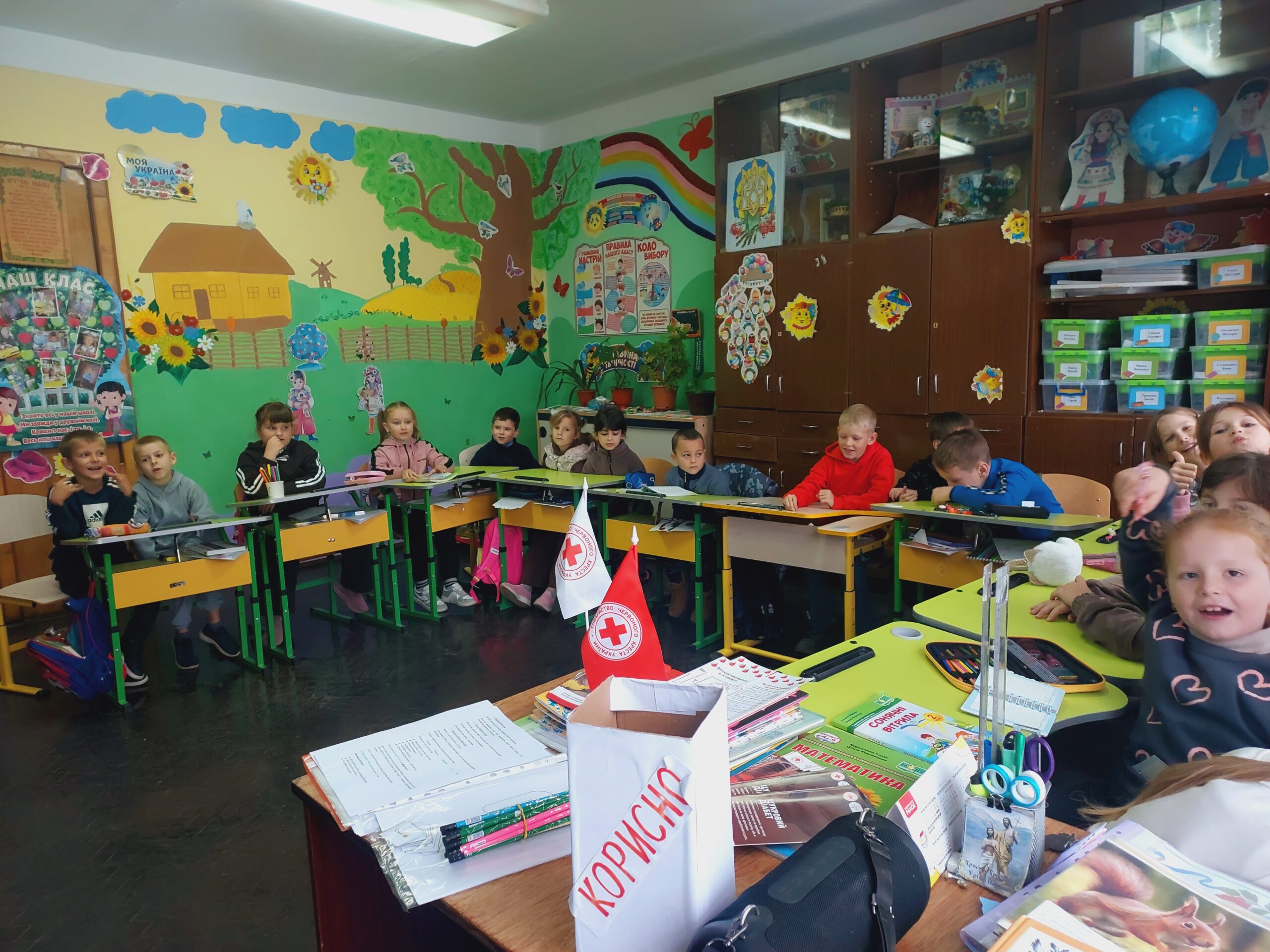 A health consultant from the Ukrainian Red Cross’s Health Promotion and Disease Prevention programme spoke with the children about how to: