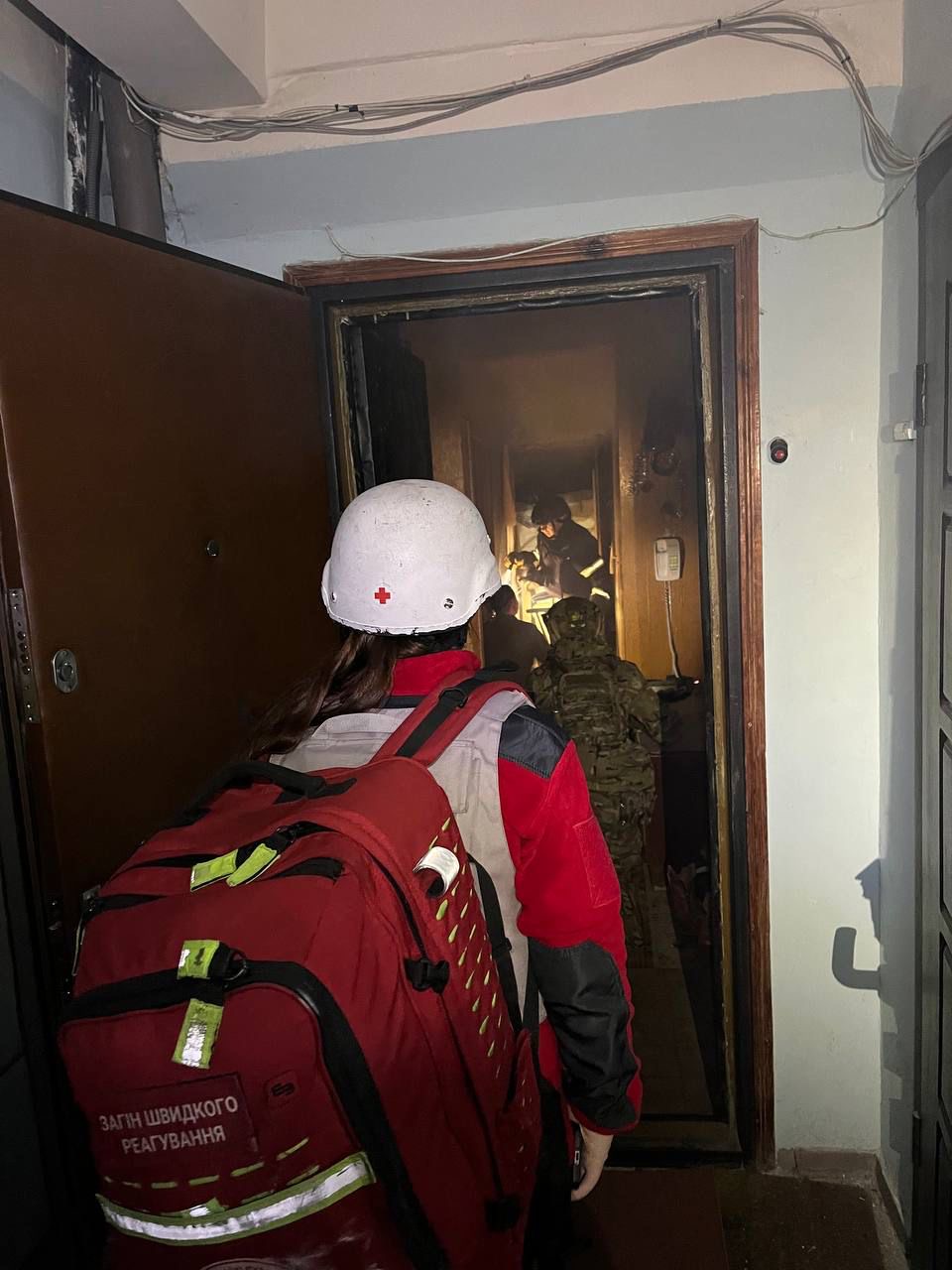 The Ukrainian Red Cross emergency response team, working together with first responders from the State Emergency Service (SES) of Ukraine, delivered support in five locations: in the Podilskyi, Solomianskyi, Desnianskyi, Darnytskyi, and Obolonskyi districts. Volunteers carried out door-to-door visits and provided assistance to two affected people.