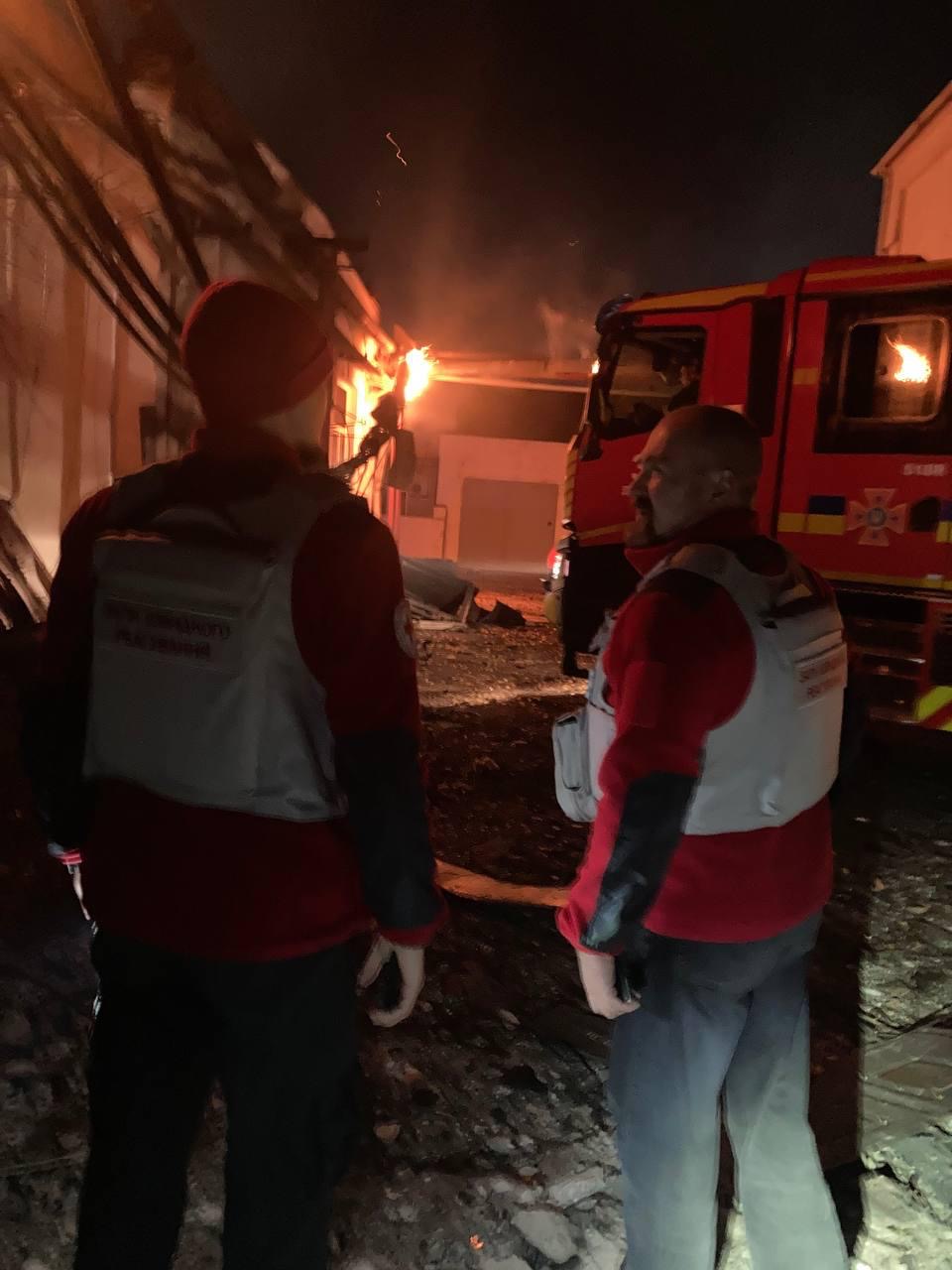 During the night, the emergency response team of the Ukrainian Red Cross in the Dnipro region worked at two sites where the aftermath of the strikes was being addressed. Volunteers conducted assessments of the affected areas and remained on site to provide assistance to those injured and to support emergency responders.