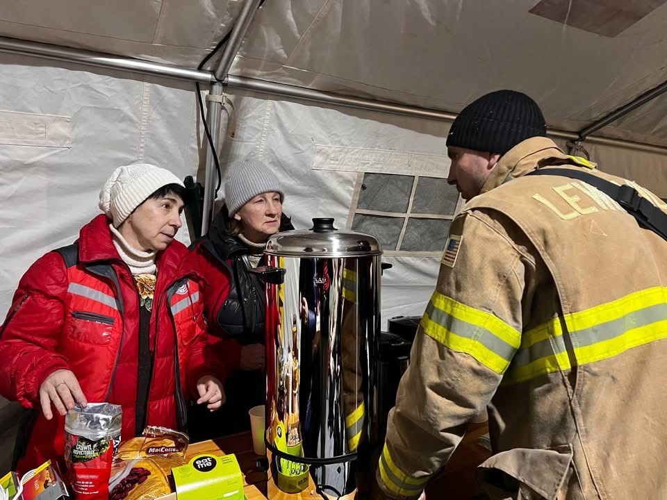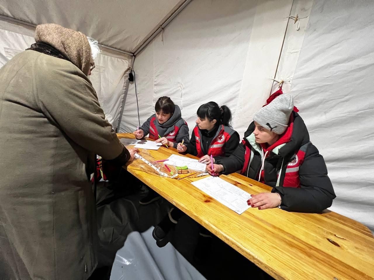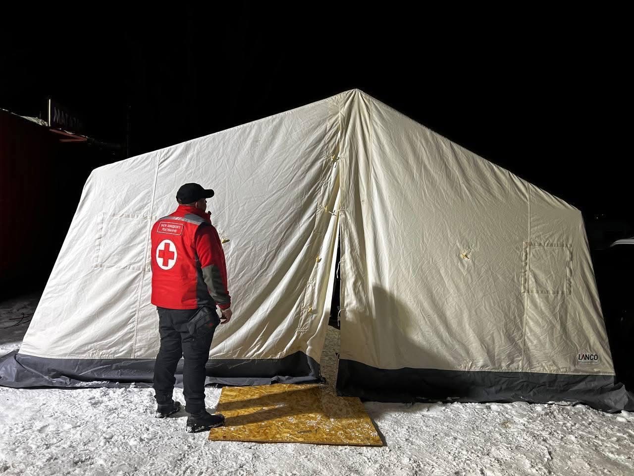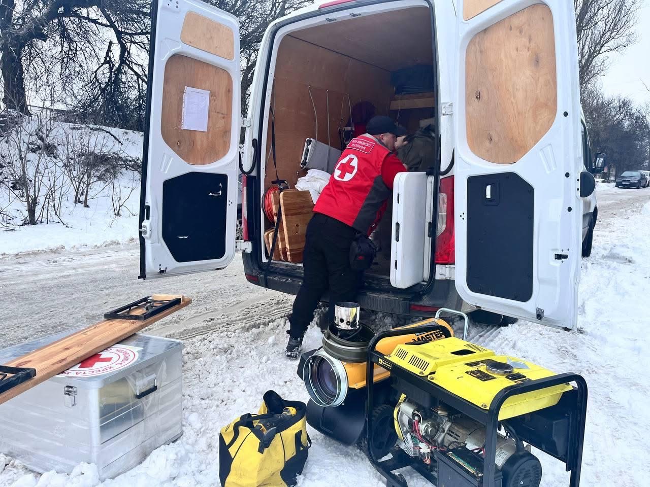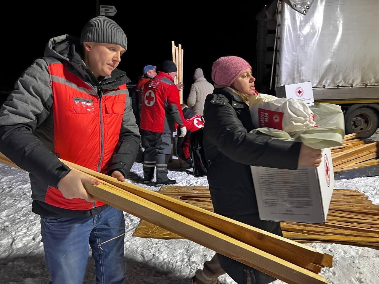 Mobile warming centres operated by the Ukrainian Red Cross are currently in place, where affected residents and emergency responders can warm up, take a short rest, have hot drinks and charge their mobile phones. Humanitarian assistance is being distributed on site in line with identified needs, including plastic sheeting, tarpaulins, OSB boards, timber beams and planks for the rapid temporary repair of damaged structures. Ukrainian Red Cross specialists are also providing psychological first aid.