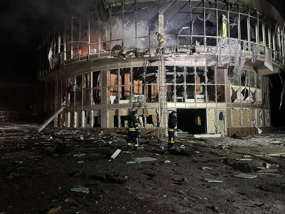 The State Emergency Service of Ukraine reported that last night Russian forces attacked Zaporizhzhia twice using strike UAVs. As a result of the first wave of the attack, three fires broke out: a non-residential annex to a multi-storey residential building and two outbuildings caught fire. Residential buildings, road surfaces and vehicles were damaged by debris. The second strike caused damage to a shopping centre.