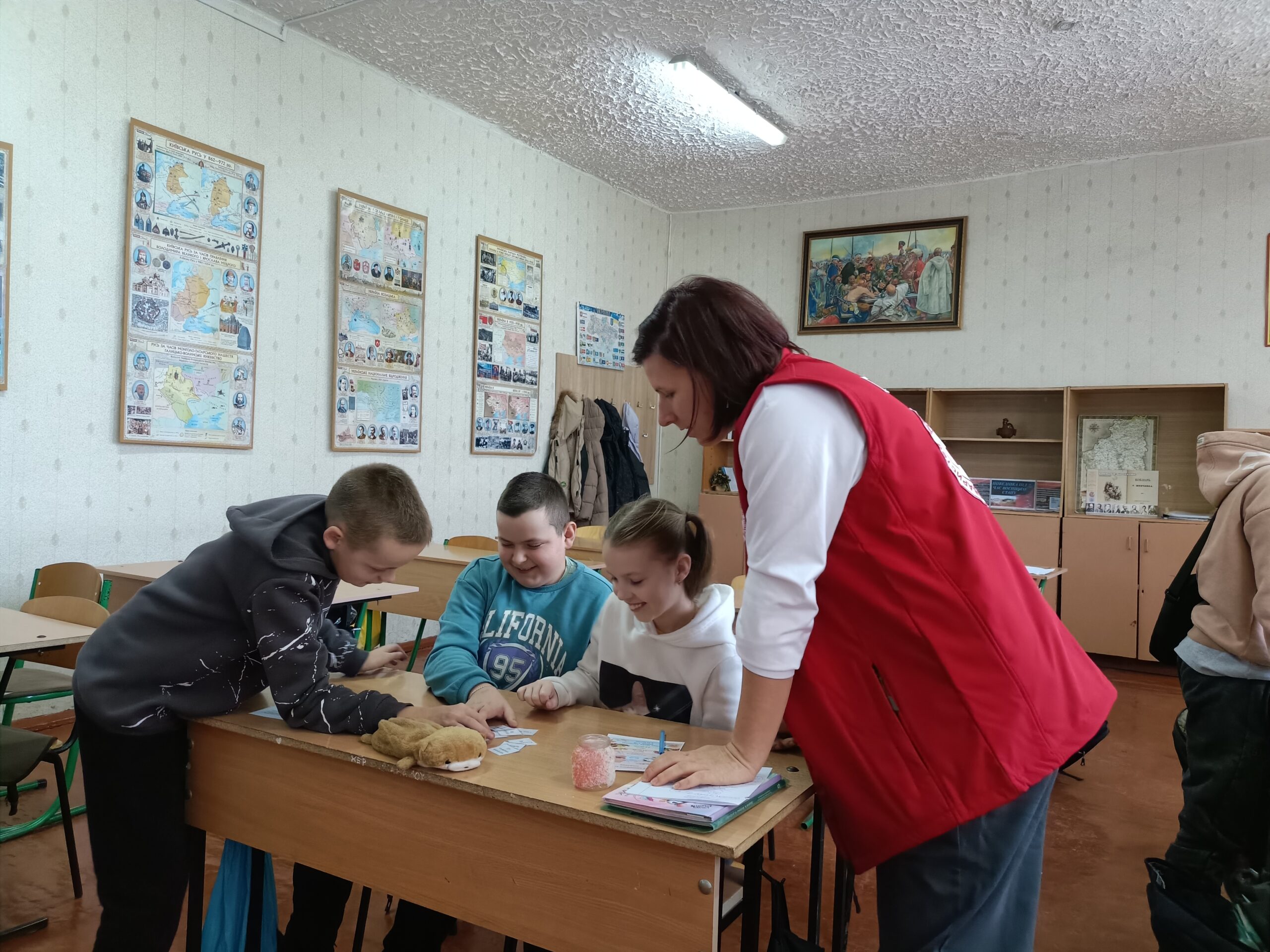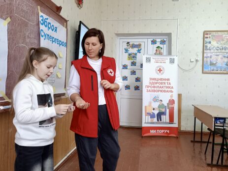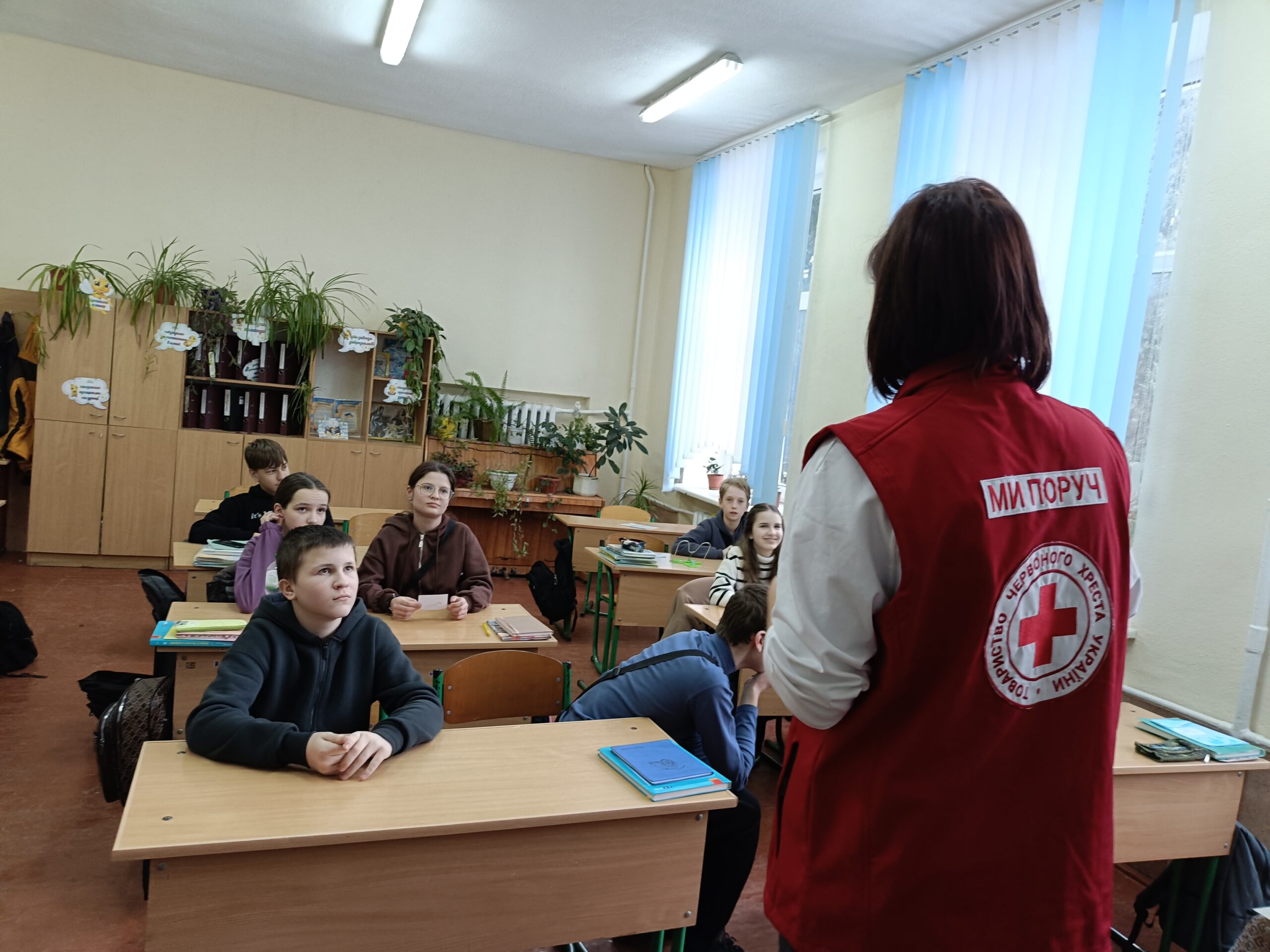 Disease prevention among children is particularly important at this time of year, as cases of acute respiratory viral infections (ARVI), influenza and COVID-19 typically increase during the winter season. In response, the Ukrainian Red Cross conducted a practical session for Year 5 and Year 7 pupils of the Hrymailiv Lyceum as part of the Health Promotion and Disease Prevention programme.