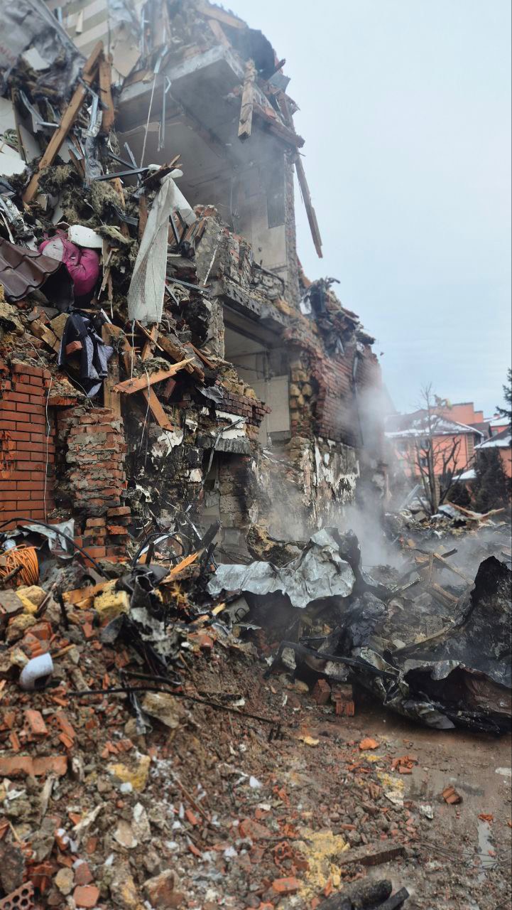 The emergency response team of the National Committee of the Ukrainian Red Cross responded to the scene of the overnight strike alongside first responders from the State Emergency Service of Ukraine and other emergency services. Volunteers provided first aid to an injured person and delivered psychological first aid.