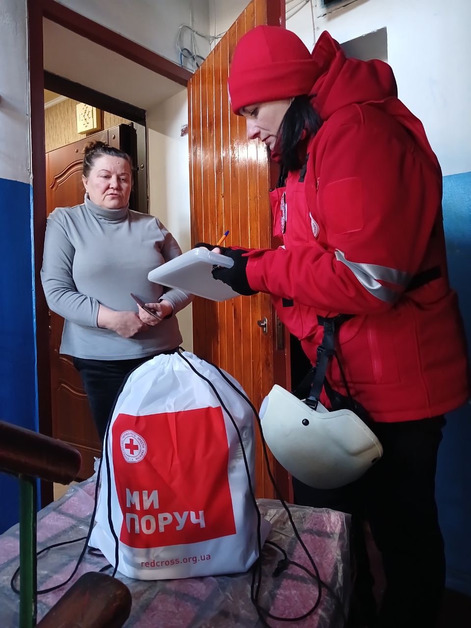 The Zaporizhzhia regional branch of the Ukrainian Red Cross is currently delivering humanitarian assistance to residents of damaged homes.