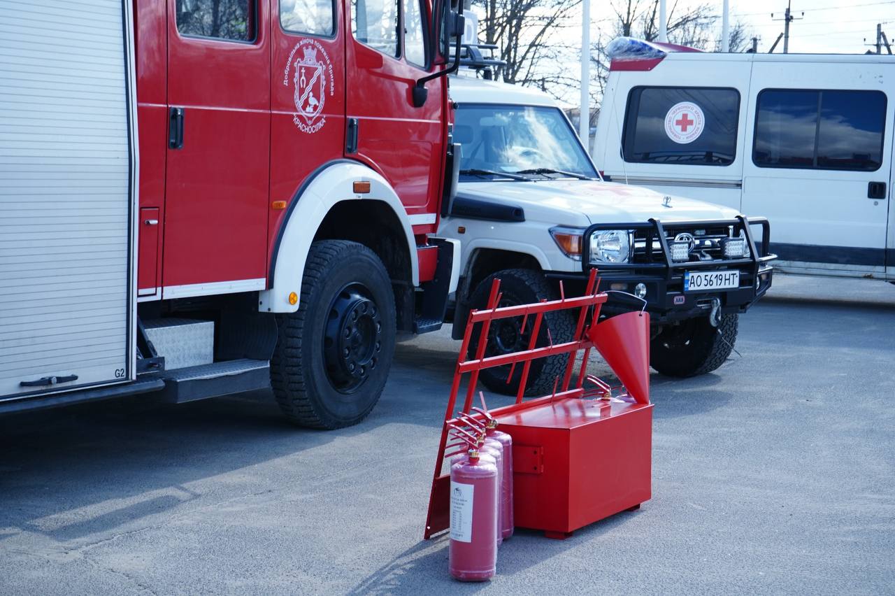 On the eve of 8 March, the Ukrainian Red Cross handed over sets of specialised clothing and firefighting equipment to the local volunteer fire brigade in the village of Krasnosilka, Odesa region.