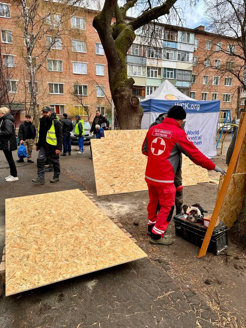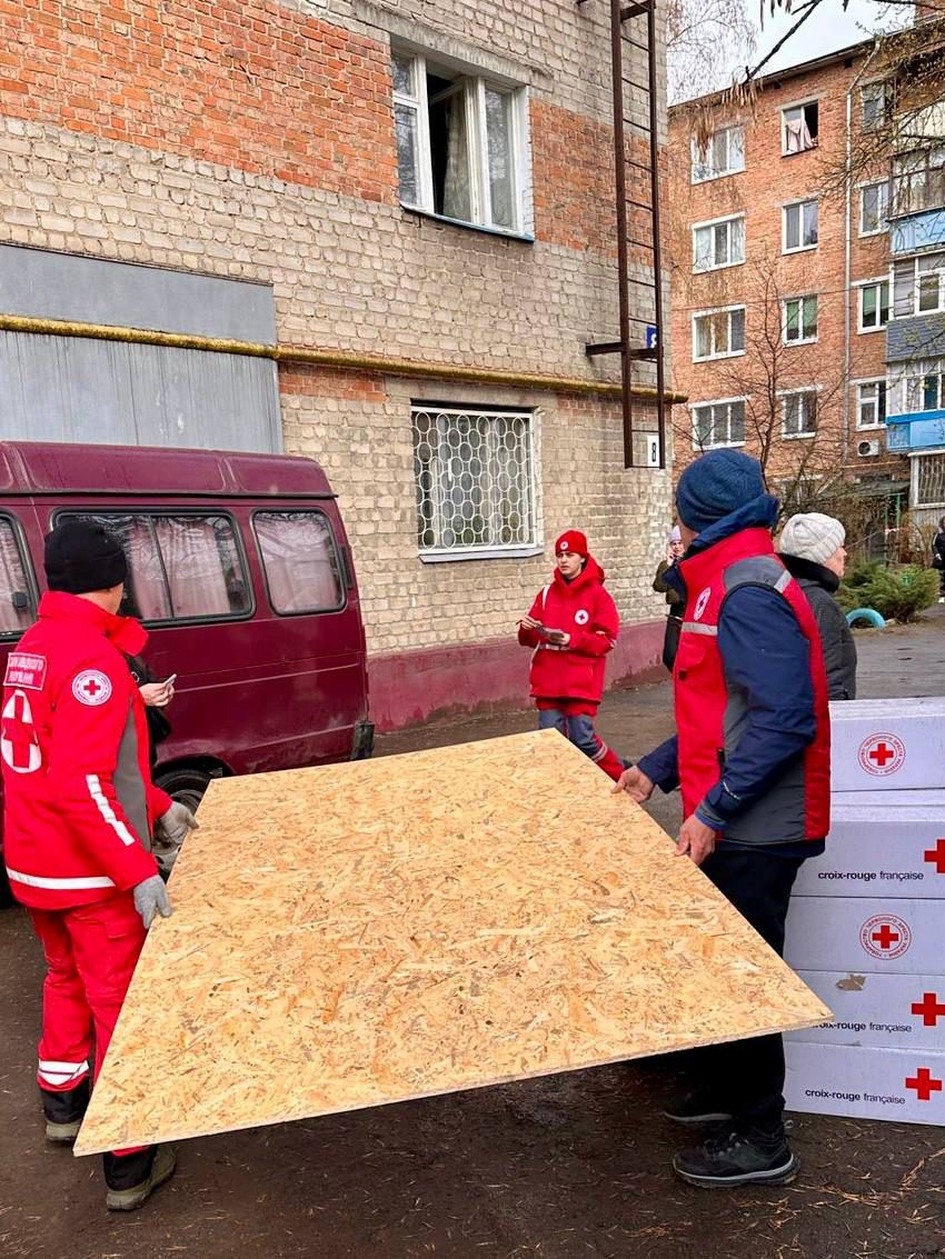 The Ukrainian Red Cross continues its response at the site: the distribution of construction materials has been organised for families whose homes were damaged, psychological first aid is being provided, and residents are being informed about the risks associated with explosive remnants of war.