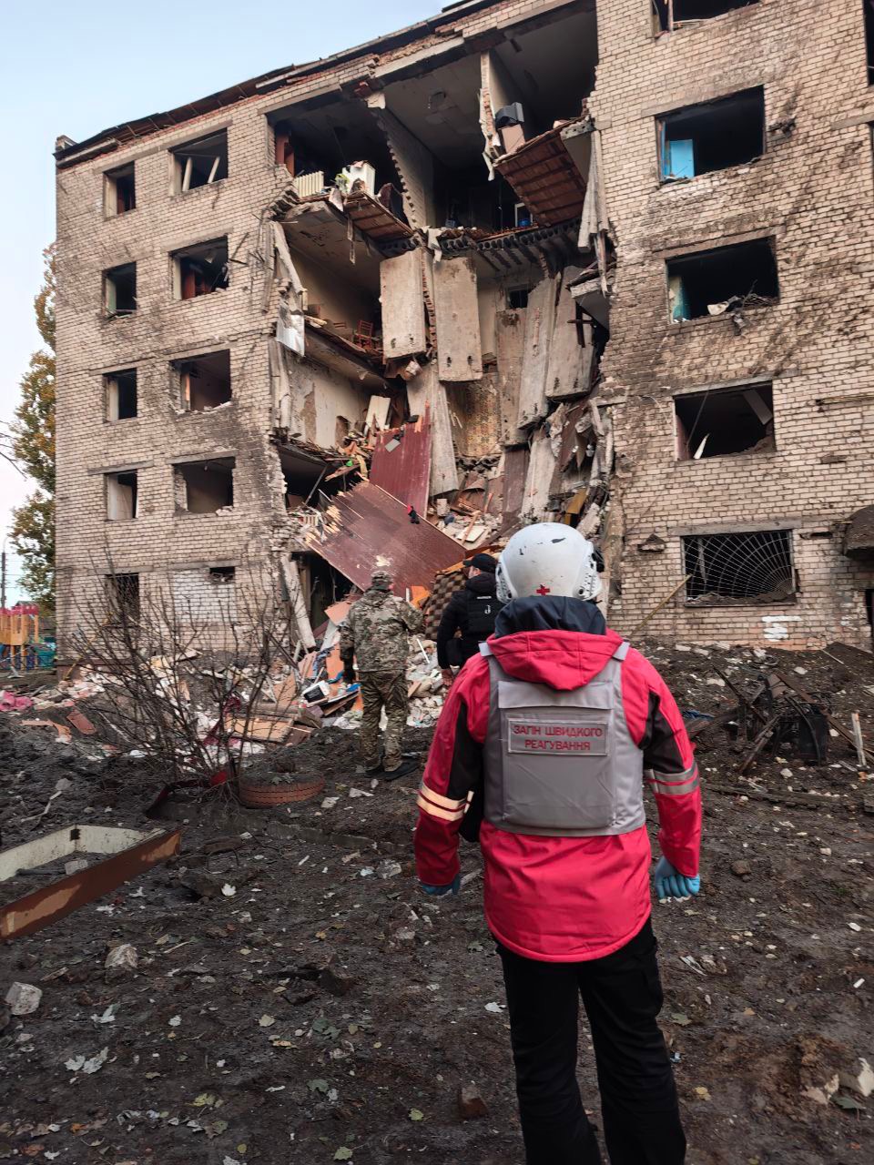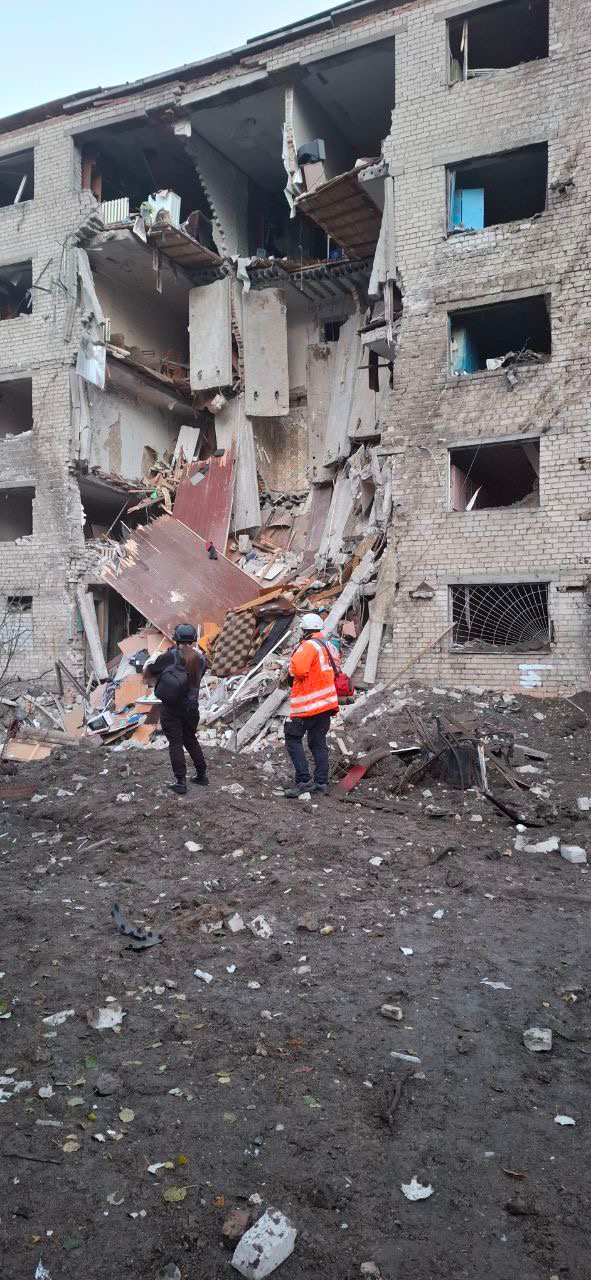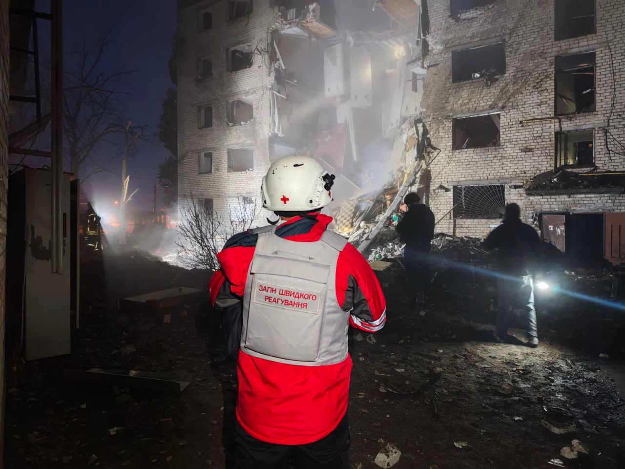 According to the State Emergency Service of Ukraine, at least 16 people have been injured as a result of the attack, including six children. One of the residential buildings was destroyed from the first to the fourth floor, followed by the collapse of the fifth. Search and rescue operations are ongoing. Fires caused by the attack have been extinguished by firefighters.