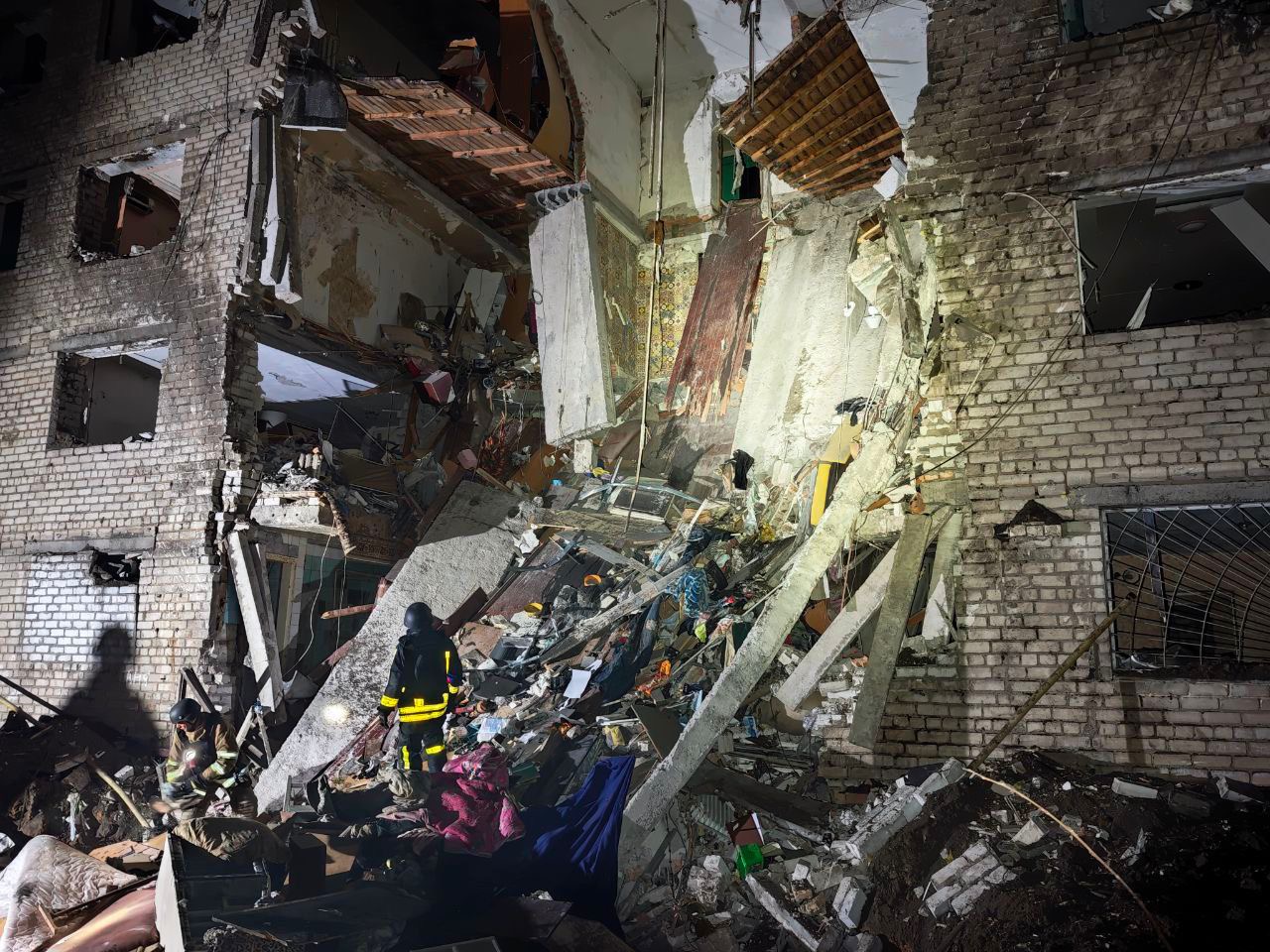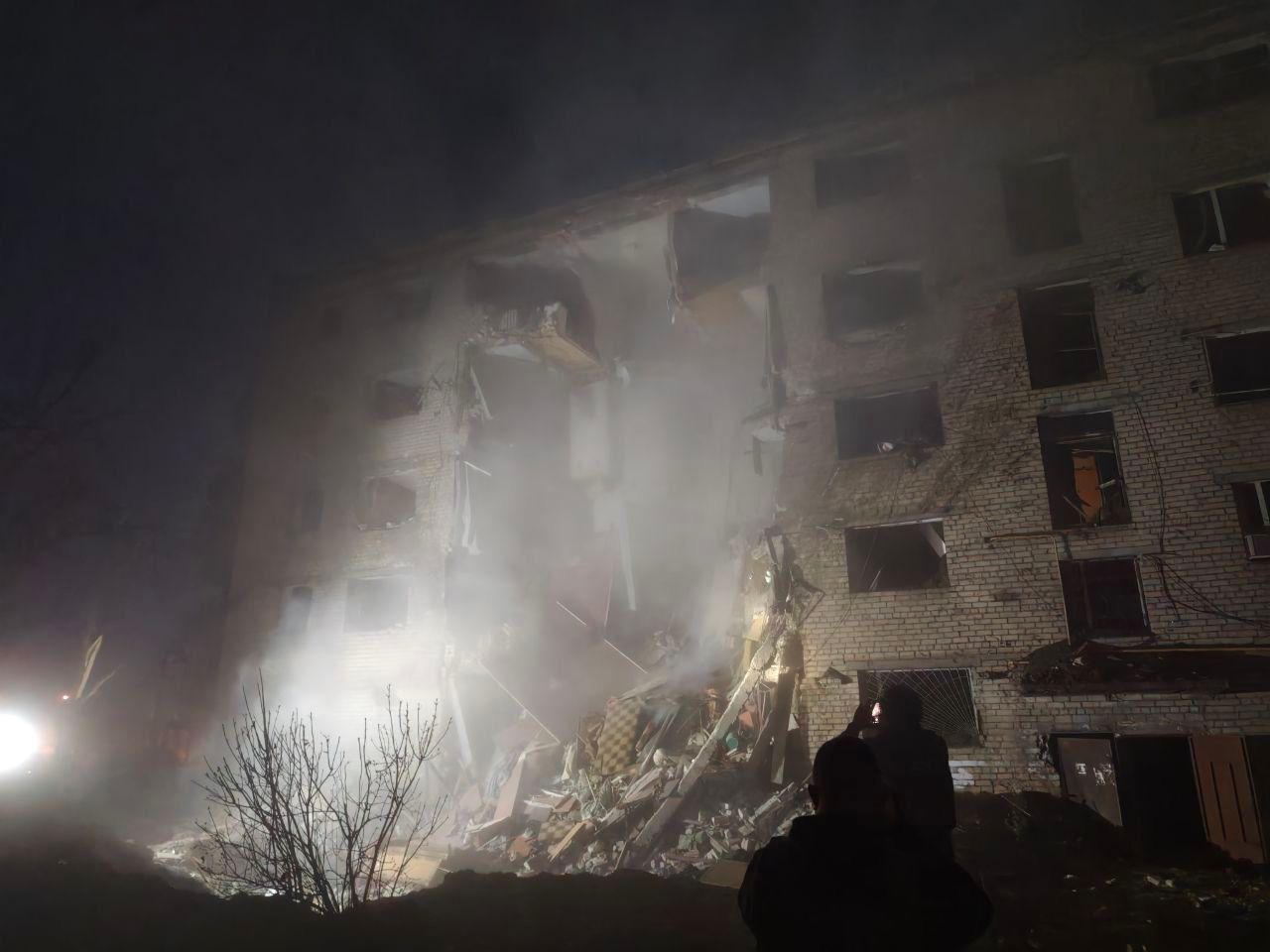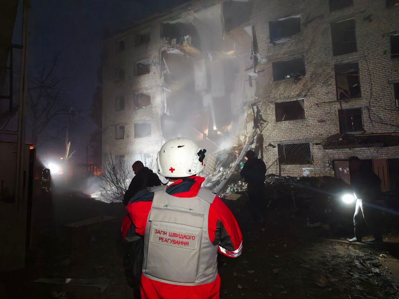 According to the State Emergency Service of Ukraine, at least 16 people have been injured as a result of the attack, including six children. One of the residential buildings was destroyed from the first to the fourth floor, followed by the collapse of the fifth. Search and rescue operations are ongoing. Fires caused by the attack have been extinguished by firefighters.