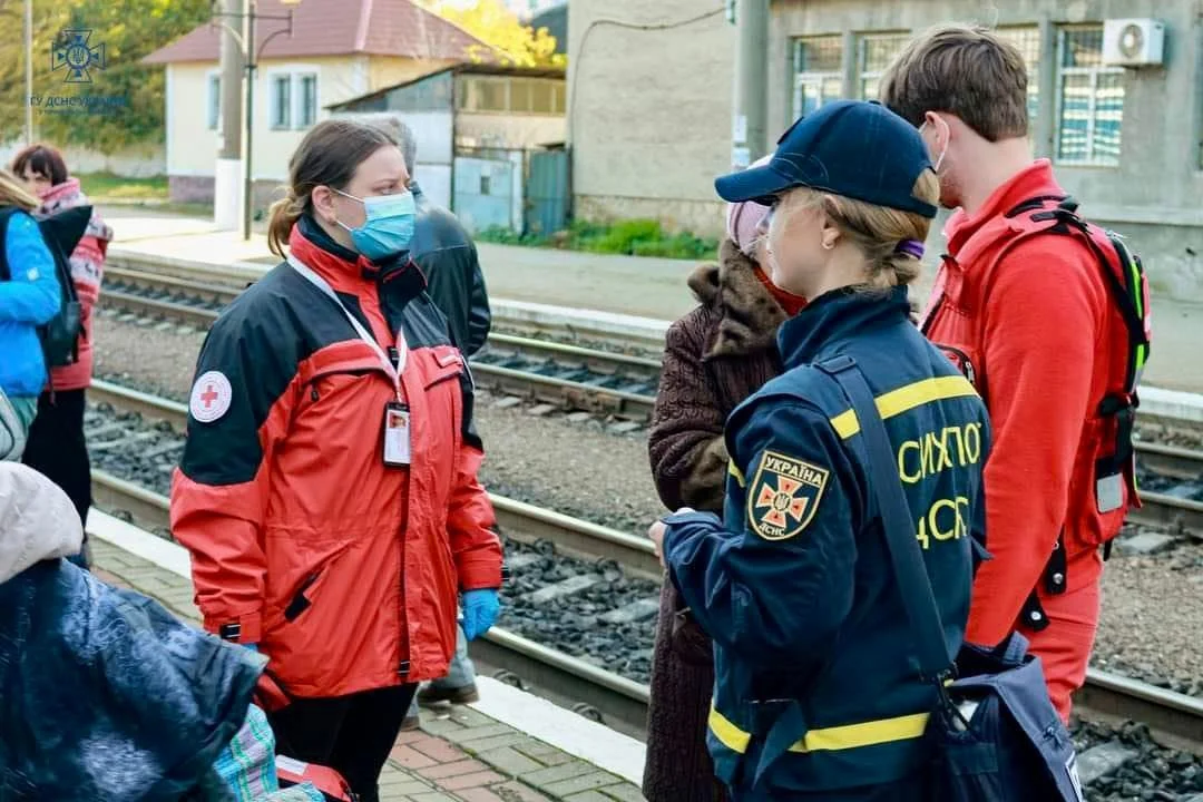 У Тернополі Червоний Хрест України допомагав евакуйованим зійти з потягу та дістатися шелтерів. Це понад 80 внутрішньо переміщених осіб – чоловіків, жінок і дітей із Донеччини, які були змушені покинути рідні домівки через війну.