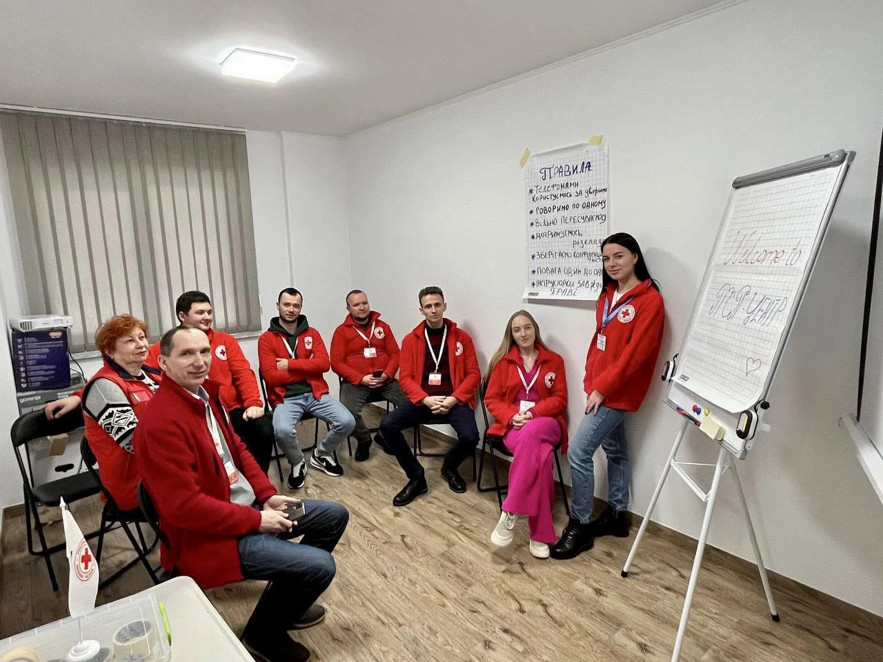 В іншому приміщенні вже відбувся перший тренінг з психосоціальної підтримки для волонтерів та співробітників, під час якого учасники отримали навички правильного надання базової психосоціальної підтримки різним категоріям населення. А під час волонтерської зустрічі команда познайомилася, мала можливість обмінятися досвідом і отримала важливу інформацію, щоб в подальшому ефективно та вчасно надавати підтримку всім, хто цього потребує.