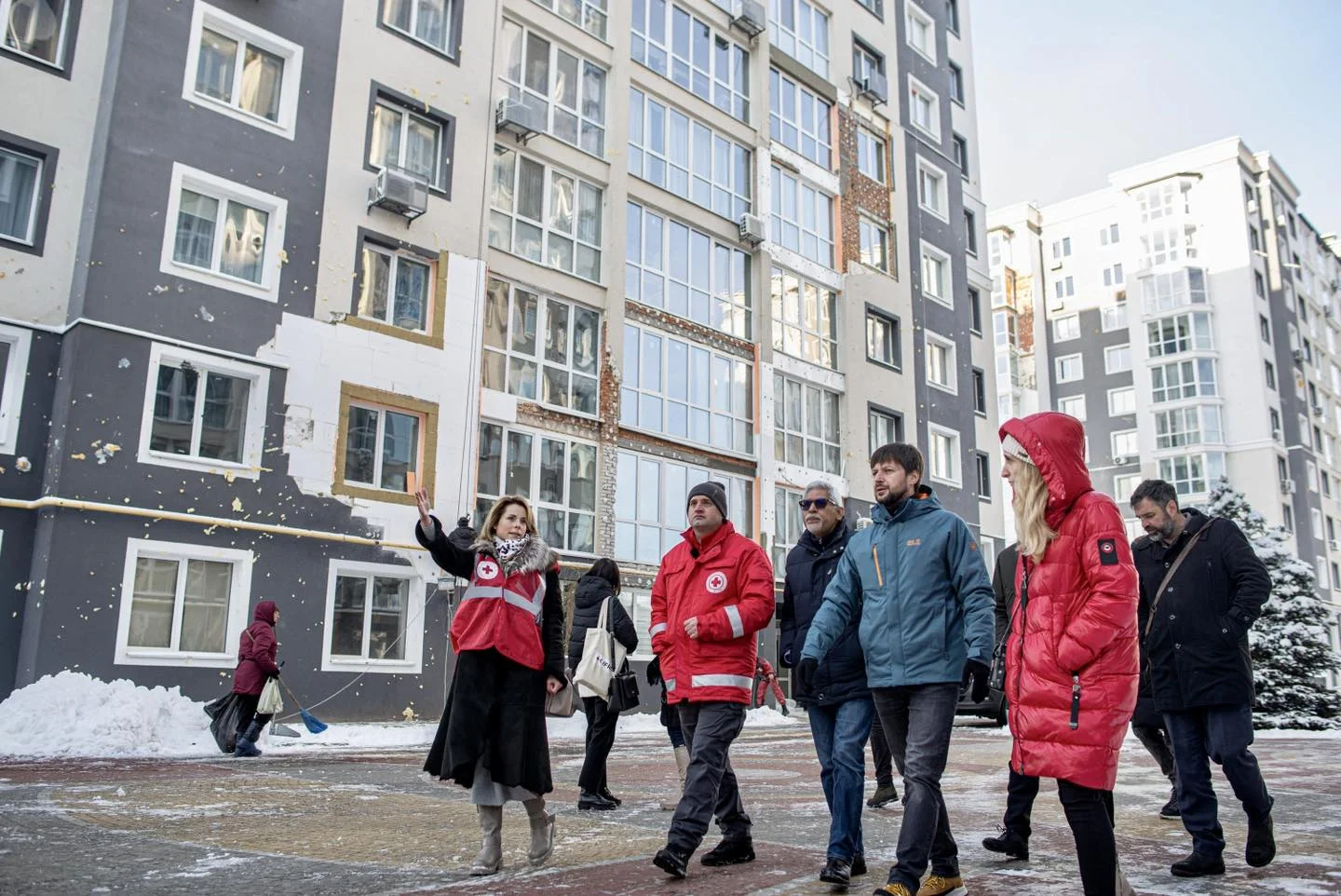 Представники Міжнародної Федерації Товариств Червоного Хреста і Червоного Півмісяця завітали у Бучу, де проводяться роботи з відновлення пошкоджених житлових будинків. Також відвідали новостворену Бучанську організацію Червоного Хреста України, де надається гуманітарна допомога місцевим мешканцям.