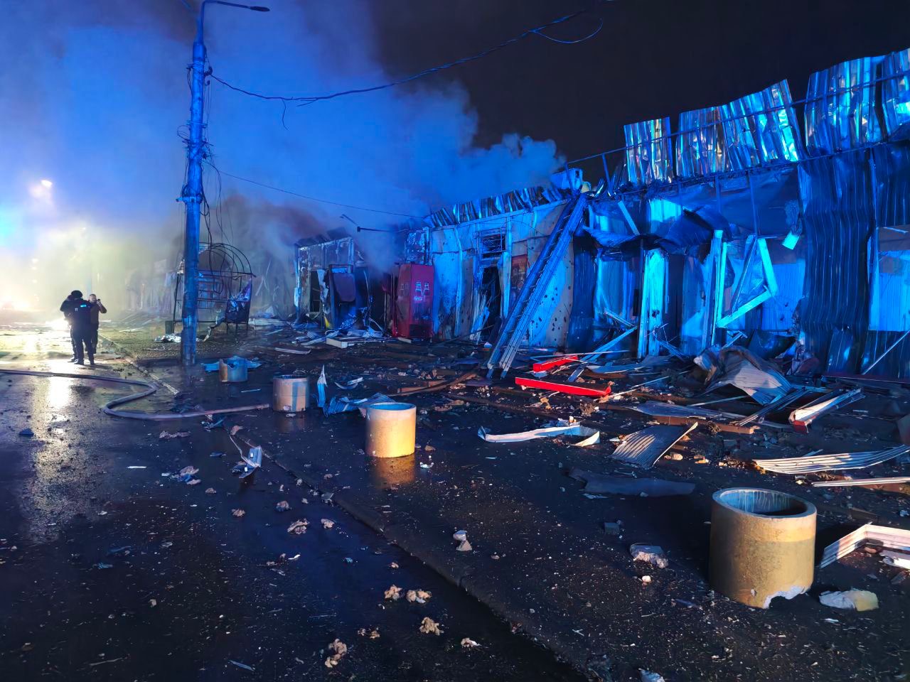 У ДСНС України повідомили, що внаслідок російської атаки загинуло 5 людей, ще 8 отримали травми. Також сталося займання торговельних кіосків та легкового автомобіля.