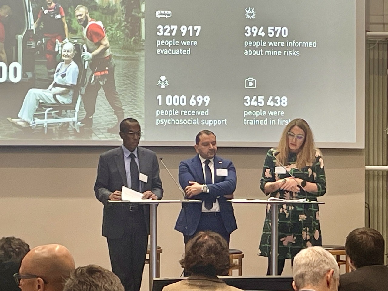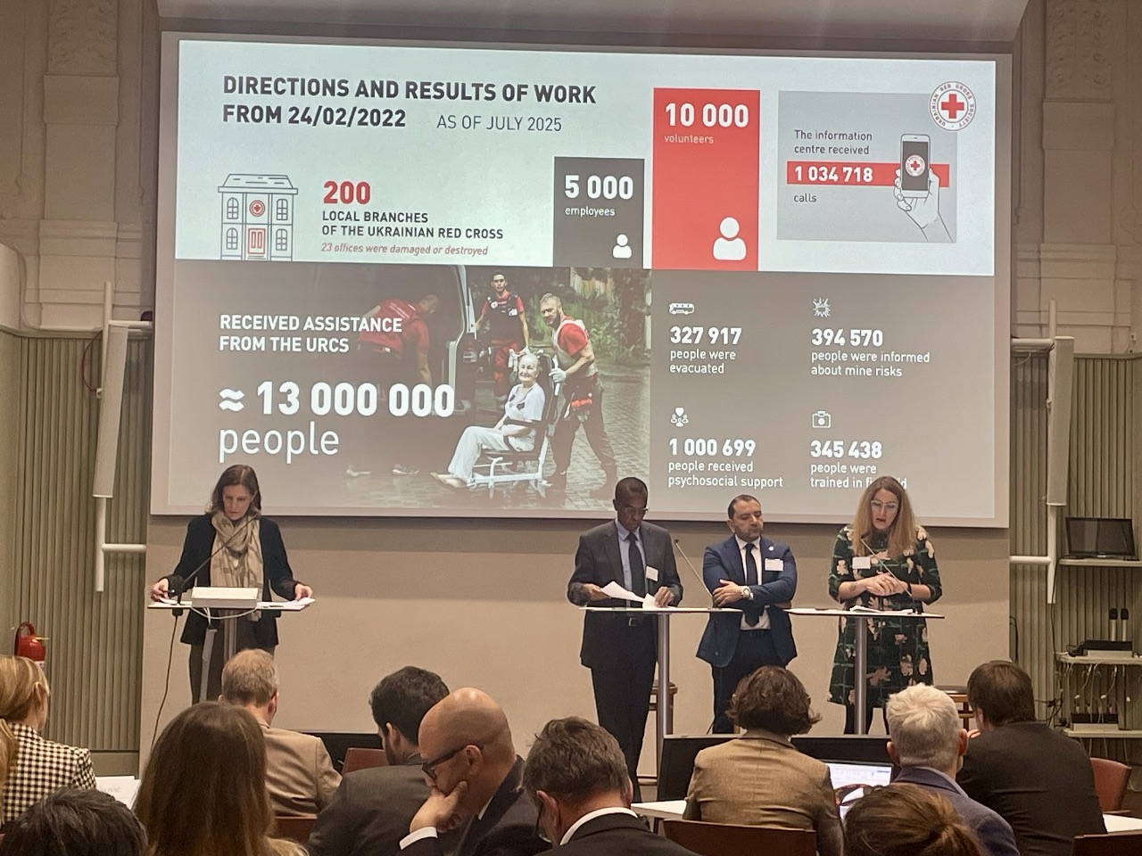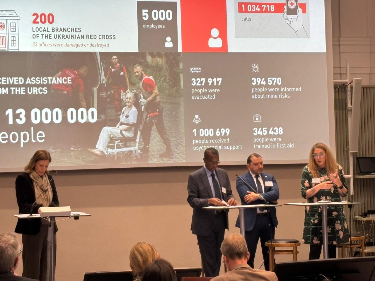 Під час спеціальної сесії, присвяченої локалізації та місцевому лідерству, керівники Українського Червоного Хреста розповіли про особливості гуманітарного контексту в Україні, про основні напрями роботи організації, а також про роль організації та співпрацю з іншими державними органами влади та місцевими громадами.
