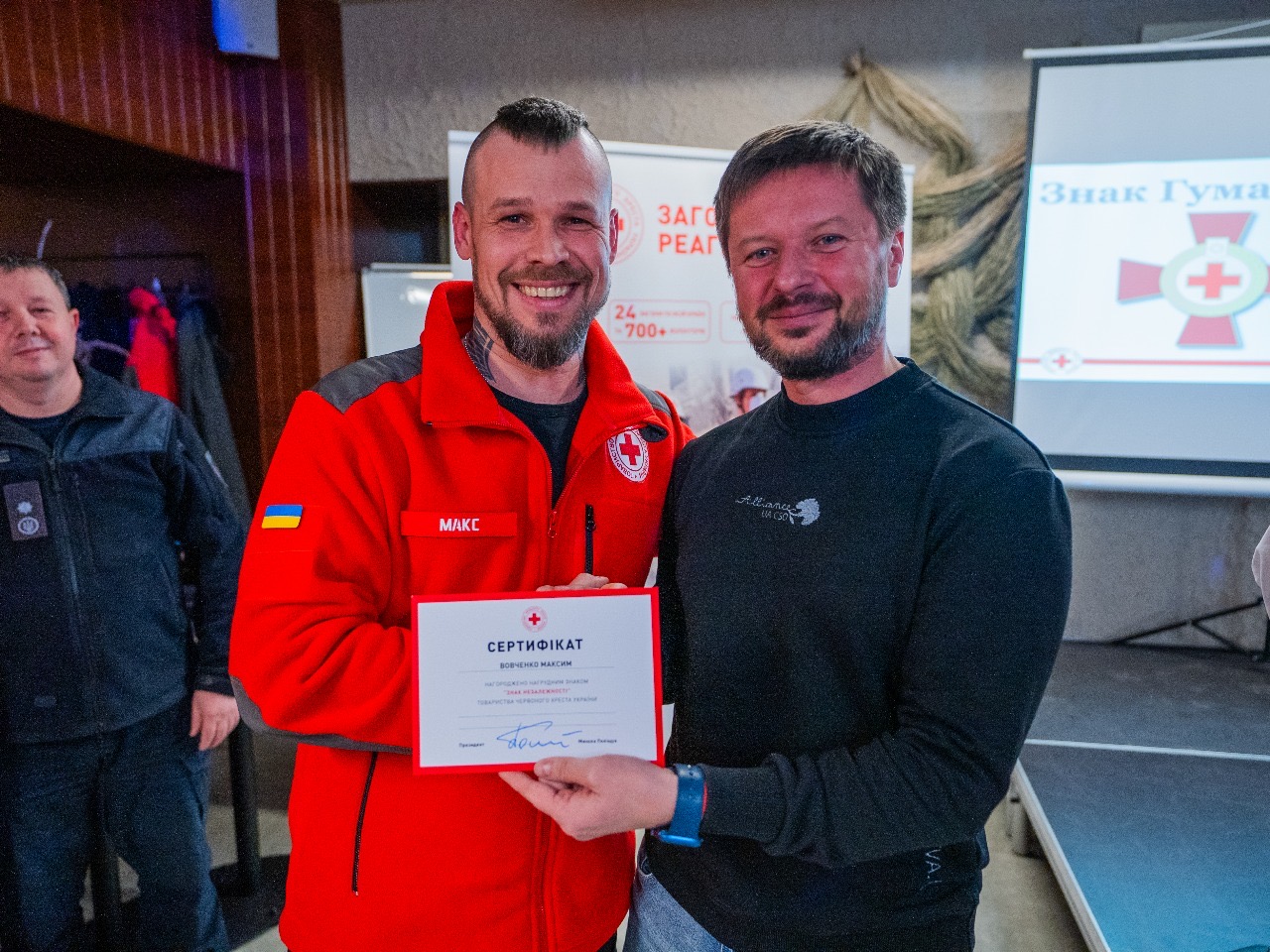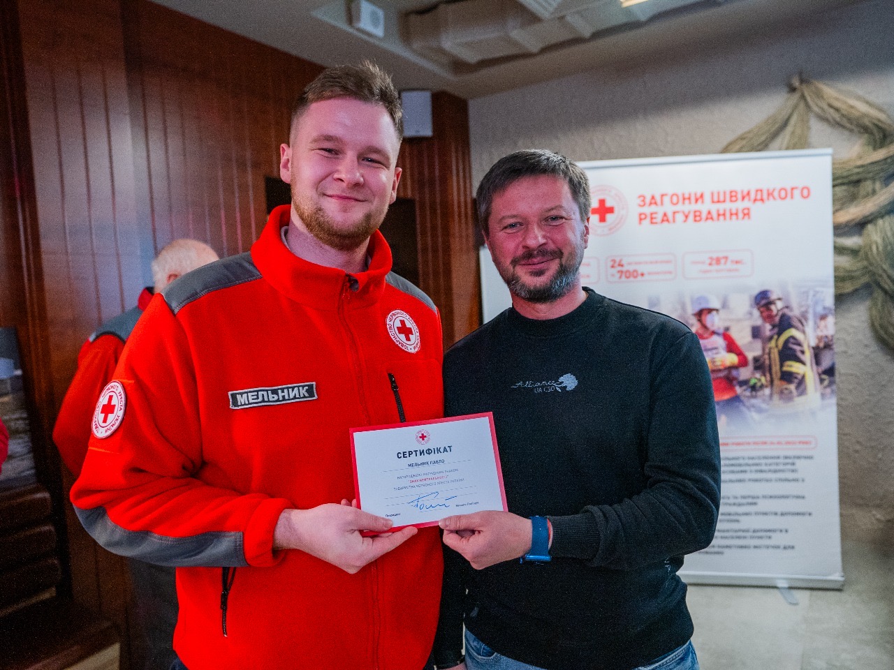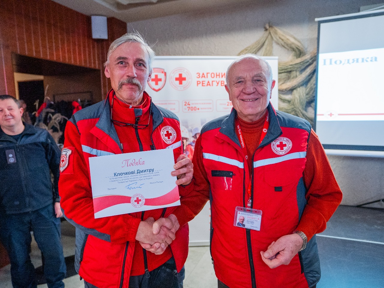 За невтомну роботу, витримку, відданість, самовіддану працю, стійкість і мужність, а також внесок у порятунок життів, волонтери отримали відзнаки та подяки від Українського Червоного Хреста. Нагороди вручили президент Українського Червоного Хреста Микола Поліщук, генеральний директор організації Максим Доценко та заступник Голови Державної служби України з надзвичайних ситуацій Володимир Демчук.