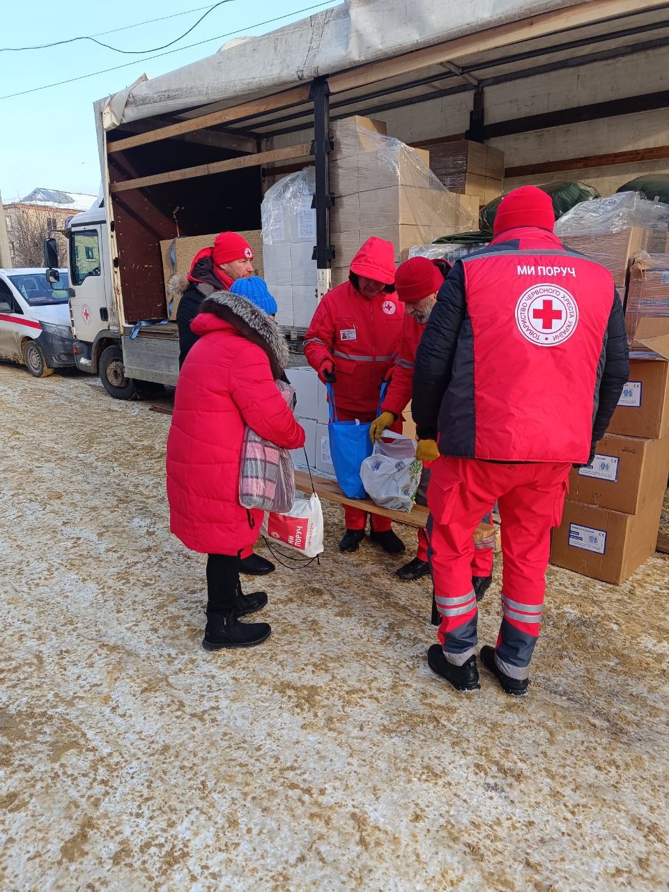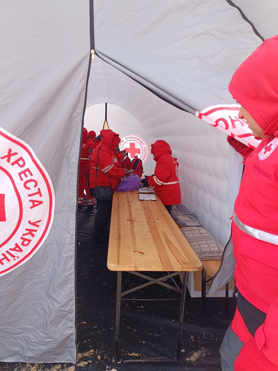 Наразі працює пункт допомоги, де можна випити чаю та зігрітися, а також триває видача гуманітарної допомоги постраждалим.