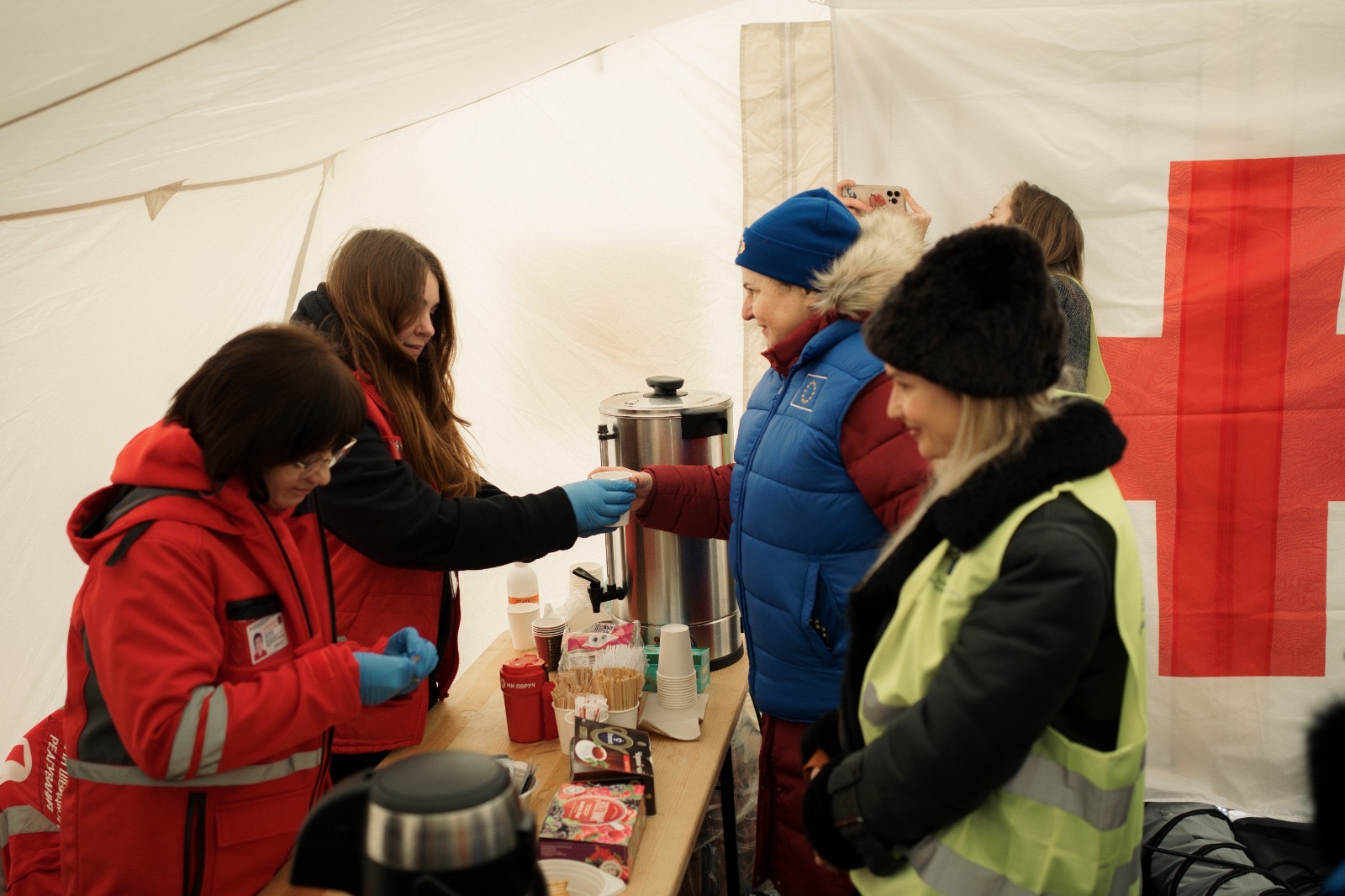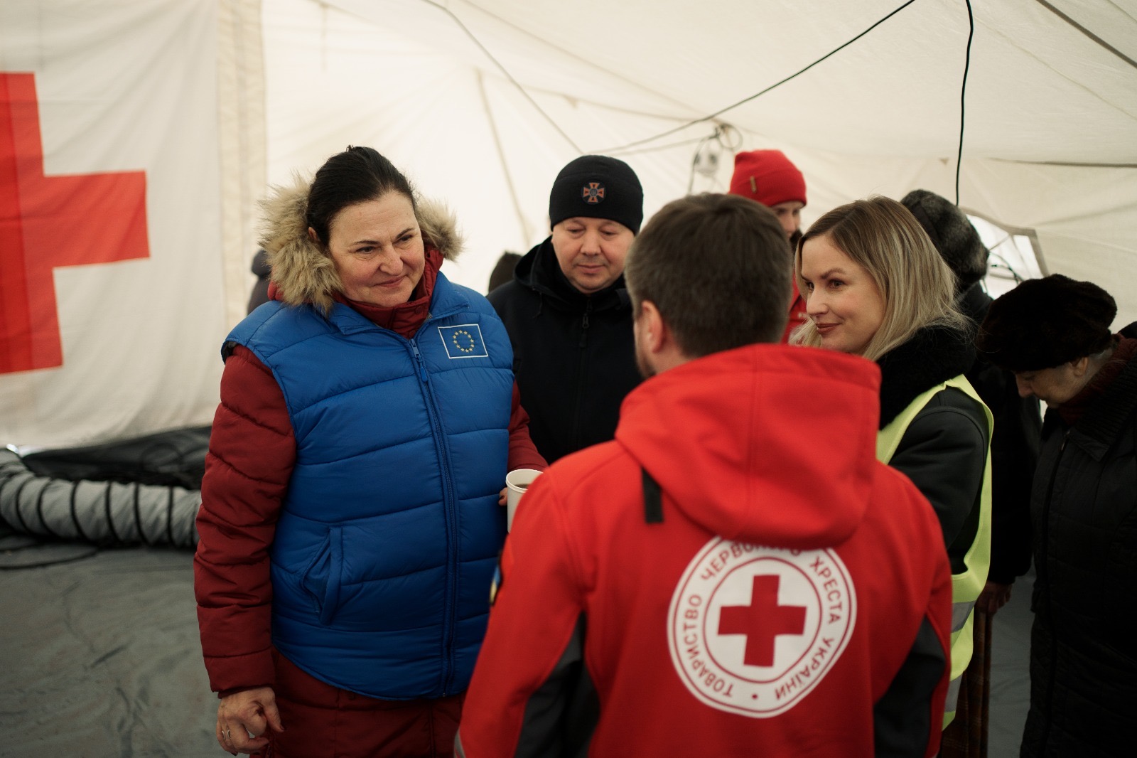 Делегація відвідала теплопункт Українського Червоного Хреста, де ознайомилася з його роботою та підтримкою населення в умовах енергетичної кризи. Окрему увагу приділили діяльності пунктів обігріву, зокрема їх матеріальному забезпеченню і заходам психосоціальної підтримки для відвідувачів. Партнери також поспілкувалася з відвідувачами теплопункту, які прийшли щоб зігрітися та зарядити мобільні телефони.