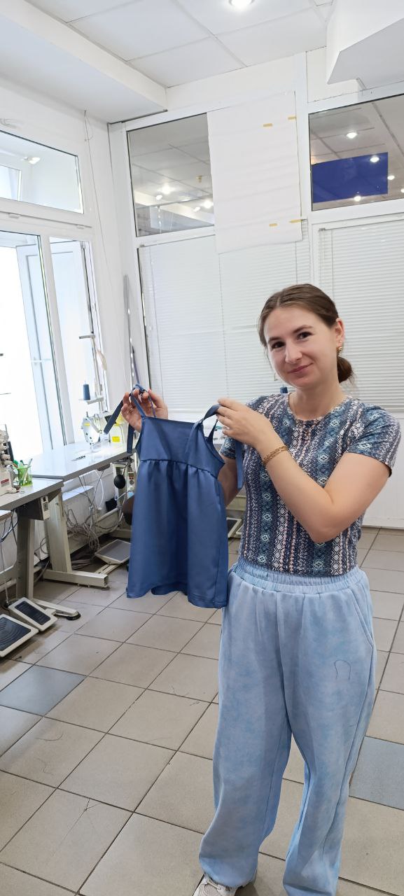 У межах програми жінка пройшла курс із пошиття одягу: навчилася працювати з різними тканинами, будувати викрійки та створювати вироби від ідеї до готового результату. Практичні заняття допомогли їй упевнено застосовувати нові навички й реалізовувати власні проєкти.