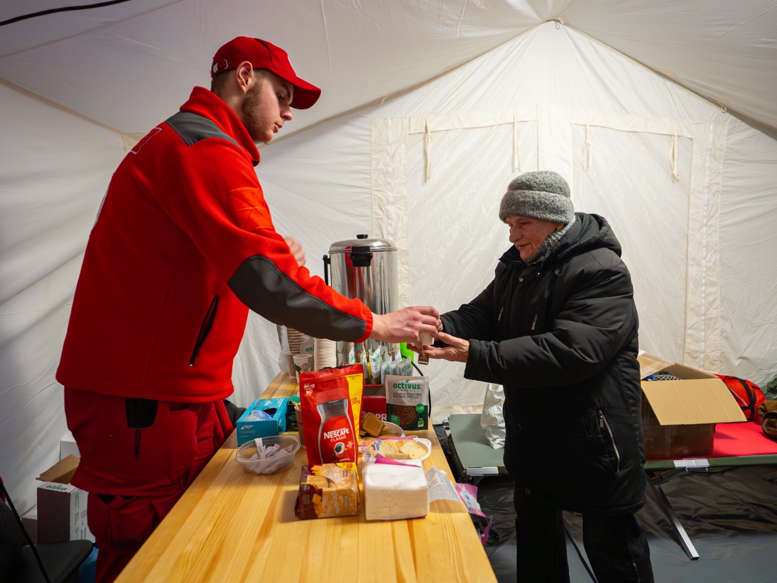 У холодні дні та після обстрілів теплопункти Українського Червоного Хреста залишаються місцем підтримки для людей. Тут можна зігрітися, випити гарячого чаю або кави, отримати гаряче харчування, зарядити телефон, перепочити та поспілкуватися.