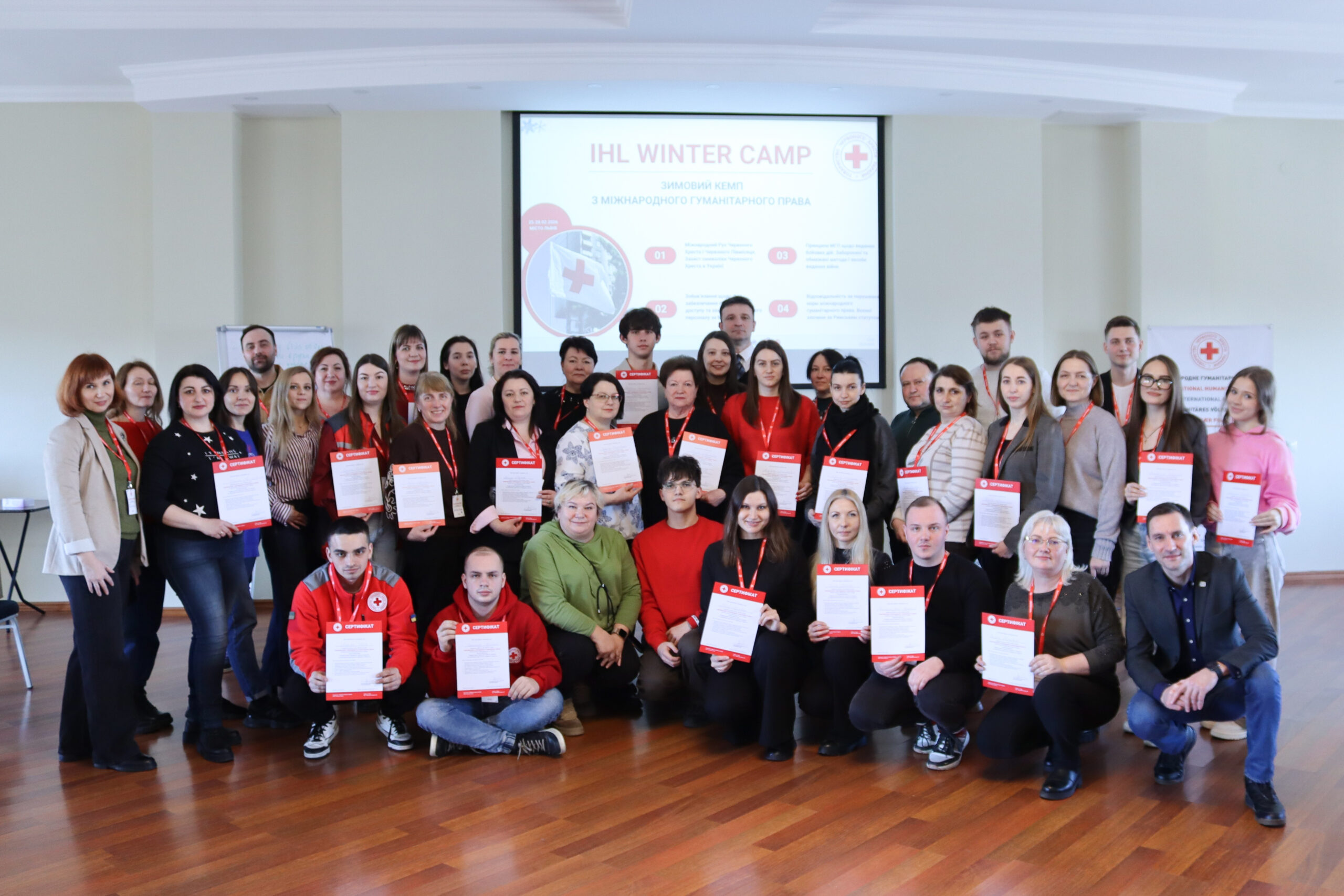 Традиційний «зимовий табір» з міжнародного гуманітарного права (МГП) пройшов у Львові, зібравши близько 50 учасників – волонтерів та співробітників Українського Червоного Хреста. Триденний захід проводився з метою поглиблення знань з МГП, як галузі права, що застосовується під час збройних конфліктів для захисту жертв війни та обмеження методів і засобів її ведення.