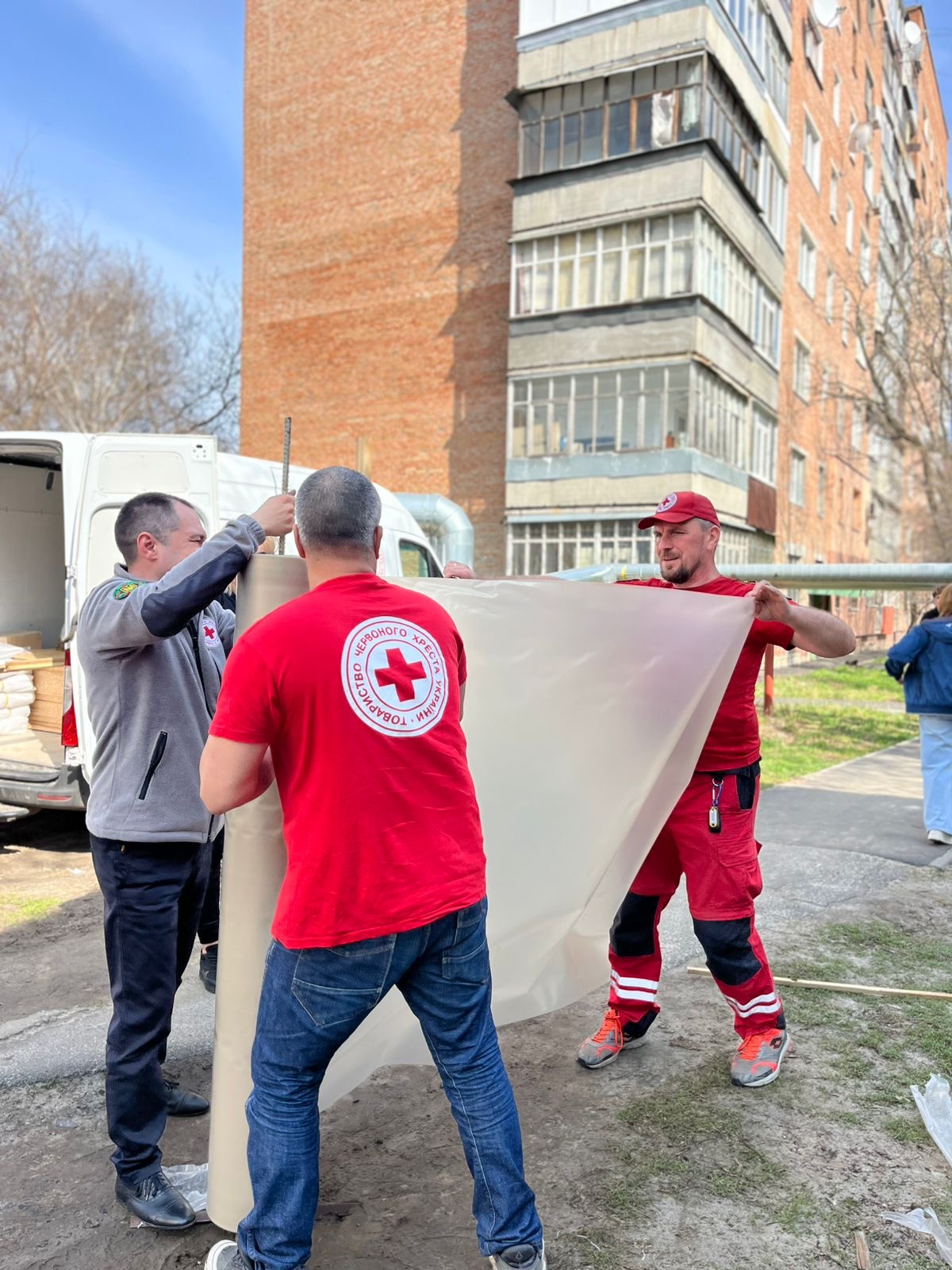Полтава: Український Червоний Хрест допомагає людям, які постраждали сьогодні внаслідок масованої атаки