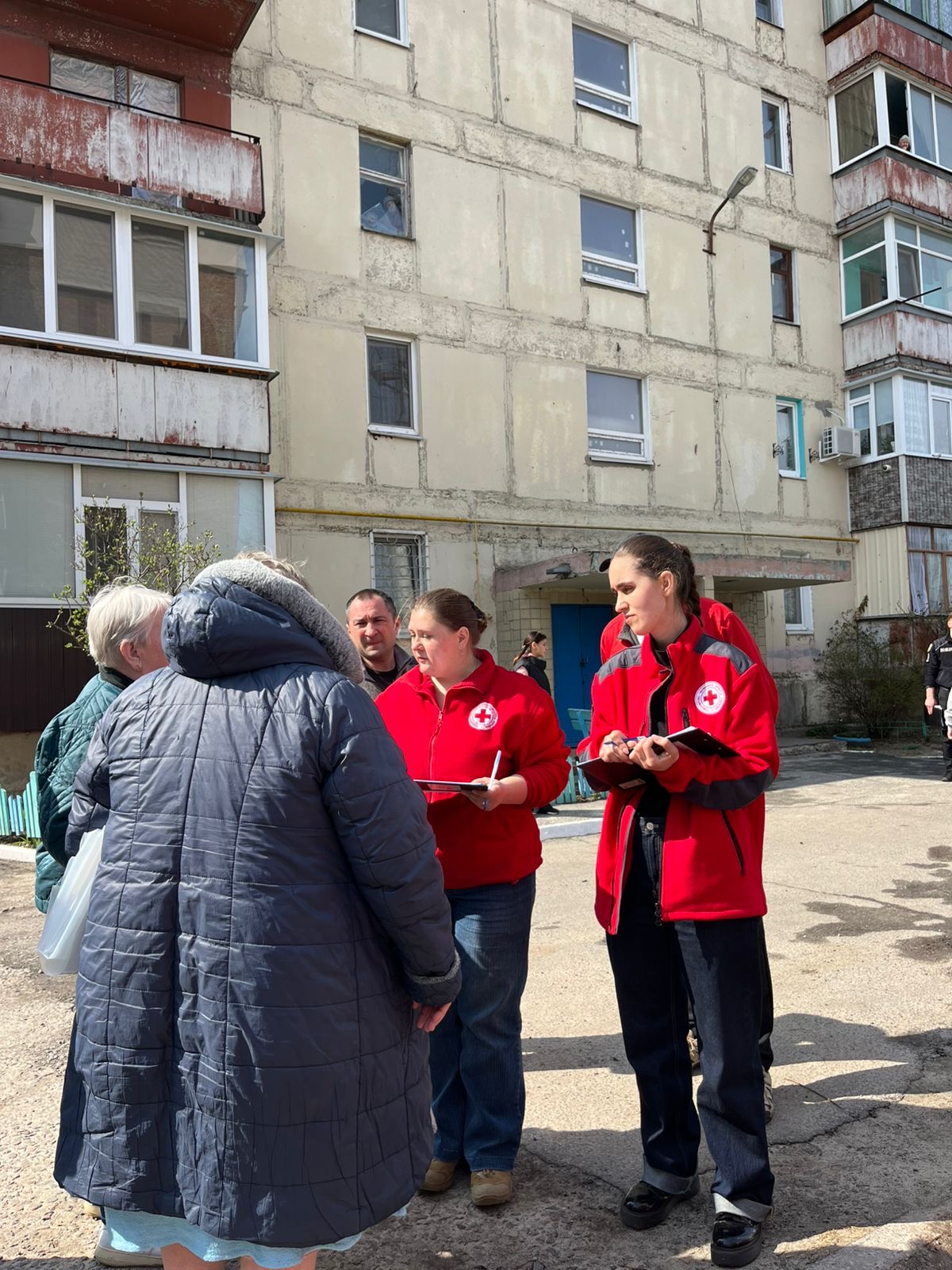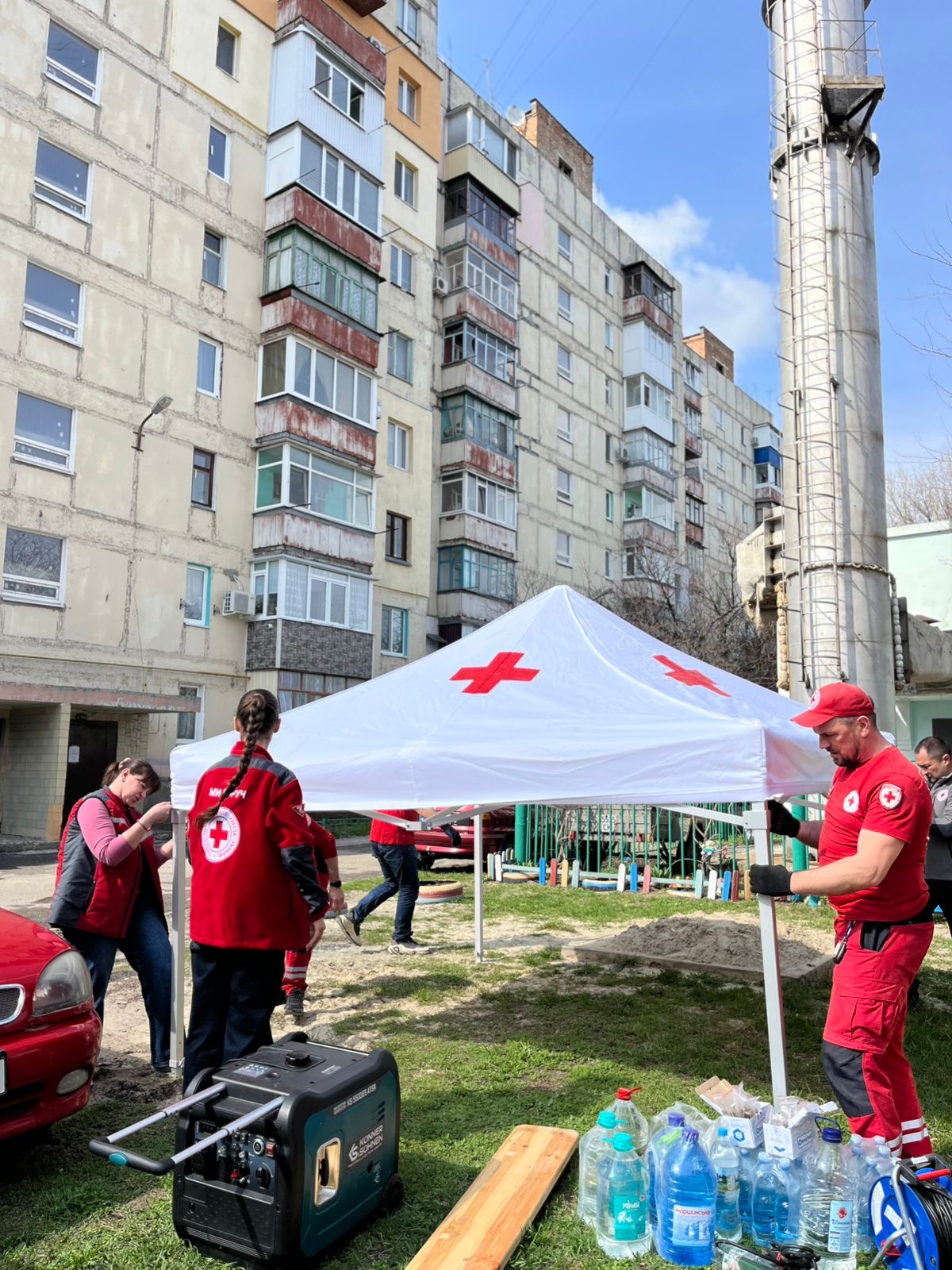 Також на місці працюють фахівці Українського Червоного Хреста, які надають людям у стані гострого стресу першу психологічну допомогу.