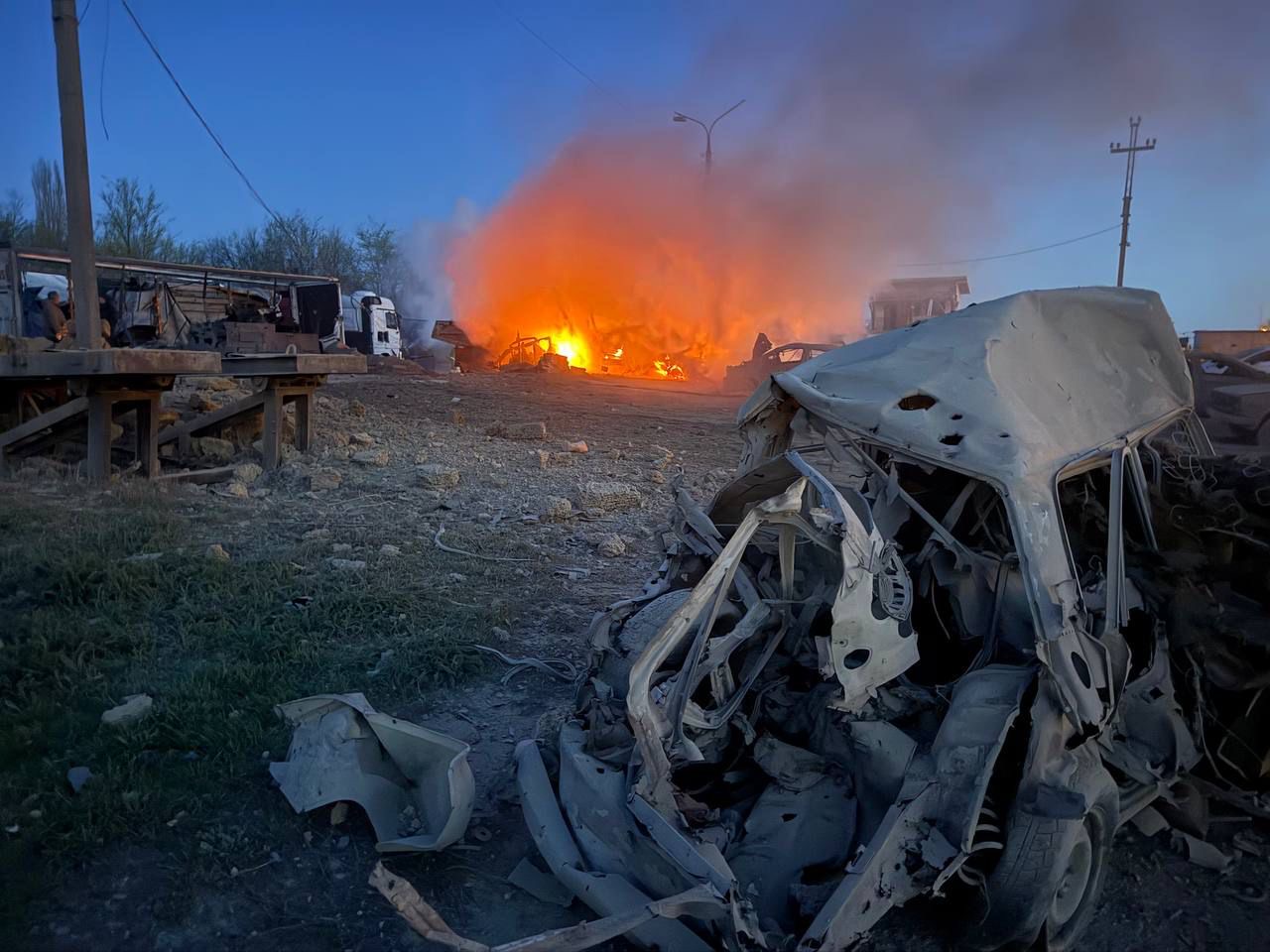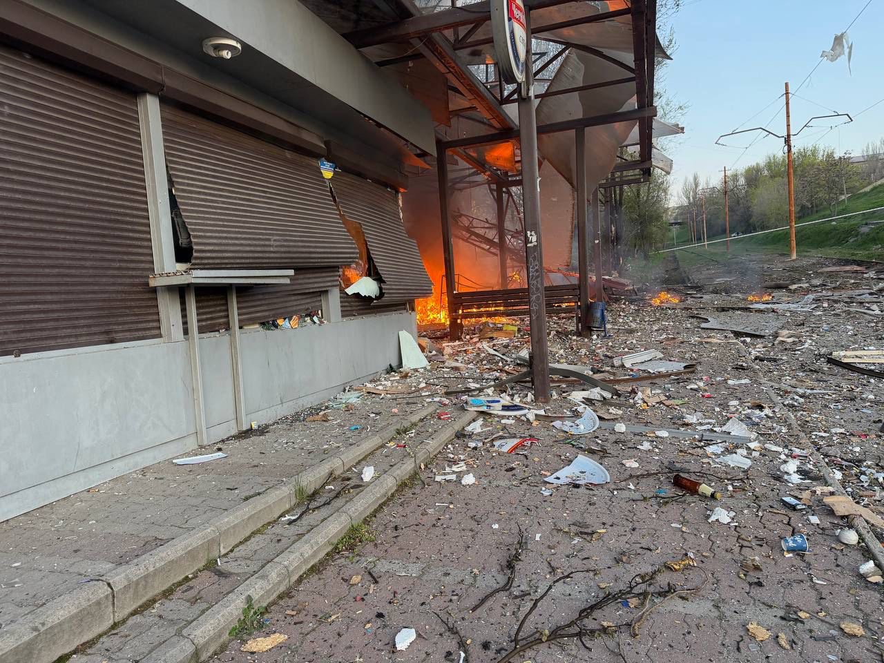 У ДСНС України повідомили, що одна жінка загинула внаслідок комбінованого удару рф по місту. Рятувальники ДСНС ліквідували пожежу у торгівельного кіоску на зупинці громадського транспорту. На інших локаціях загасили декілька транспортних засобів та два гаражі.