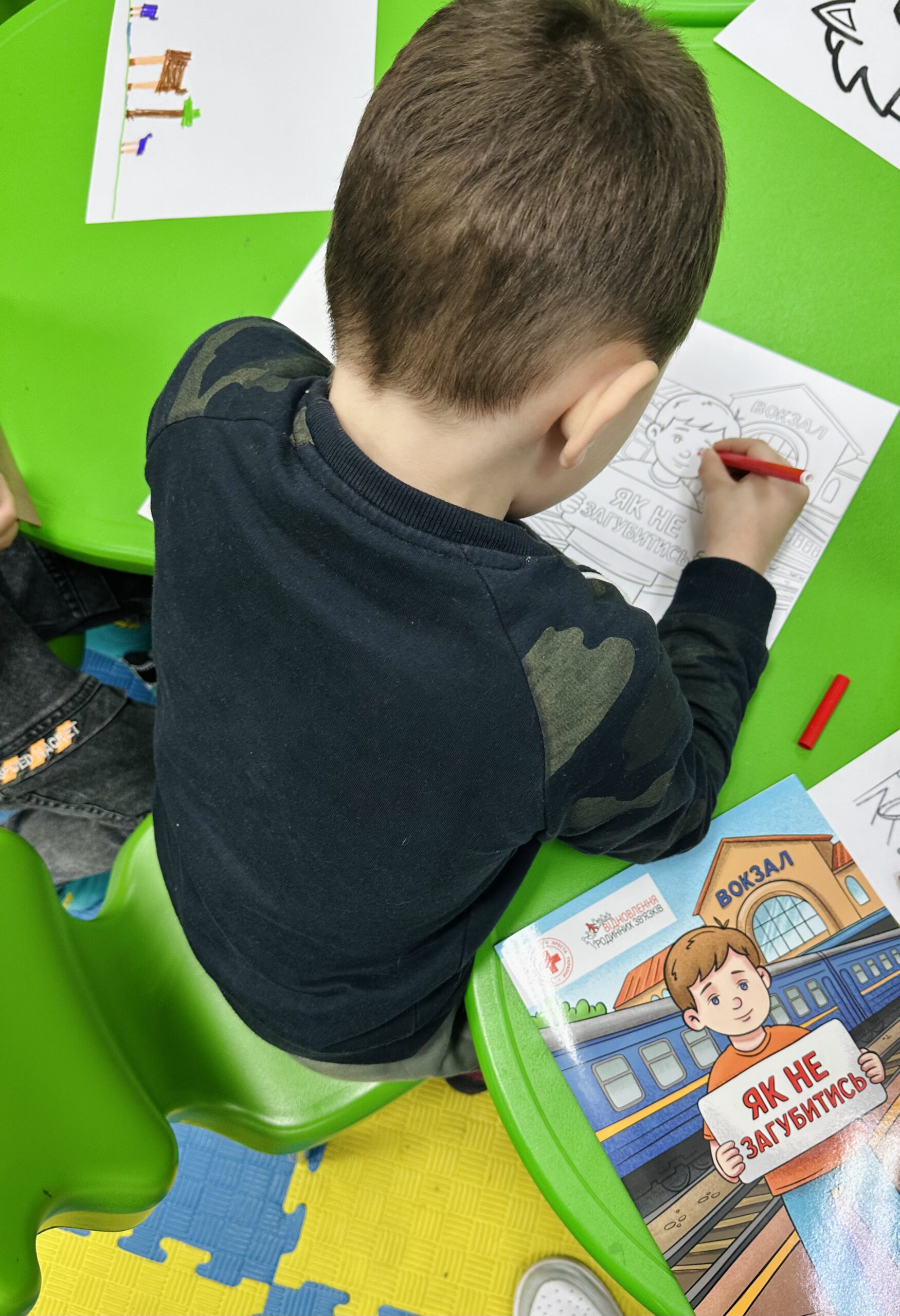 Після квесту учасники перейшли до творчої частини – розмальовували тематичні малюнки та обговорювали, як діяти у разі втрати орієнтації і які кроки варто зробити в такій ситуації.
