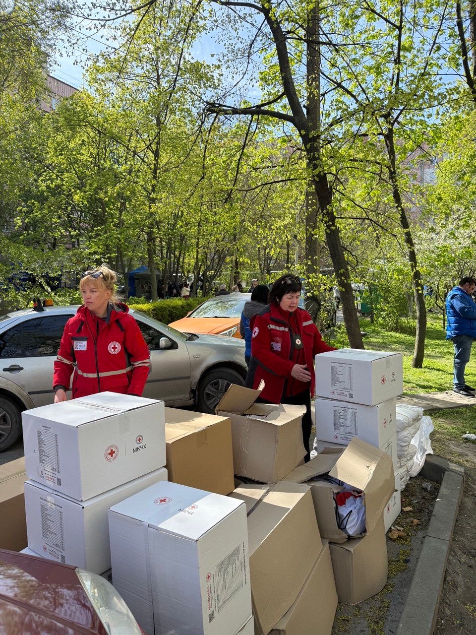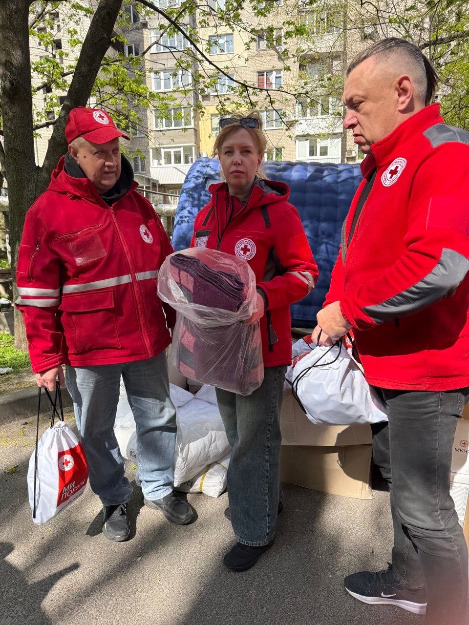 Наразі на місці ліквідації наслідків нічної атаки працює команда Дніпропетровської обласної організації Українського Червоного Хреста. Вона видає гуманітарну допомогу постраждалим — набори для надзвичайних ситуацій, тарпаулін для тимчасового перекриття пошкоджень в оселях, ковдри.