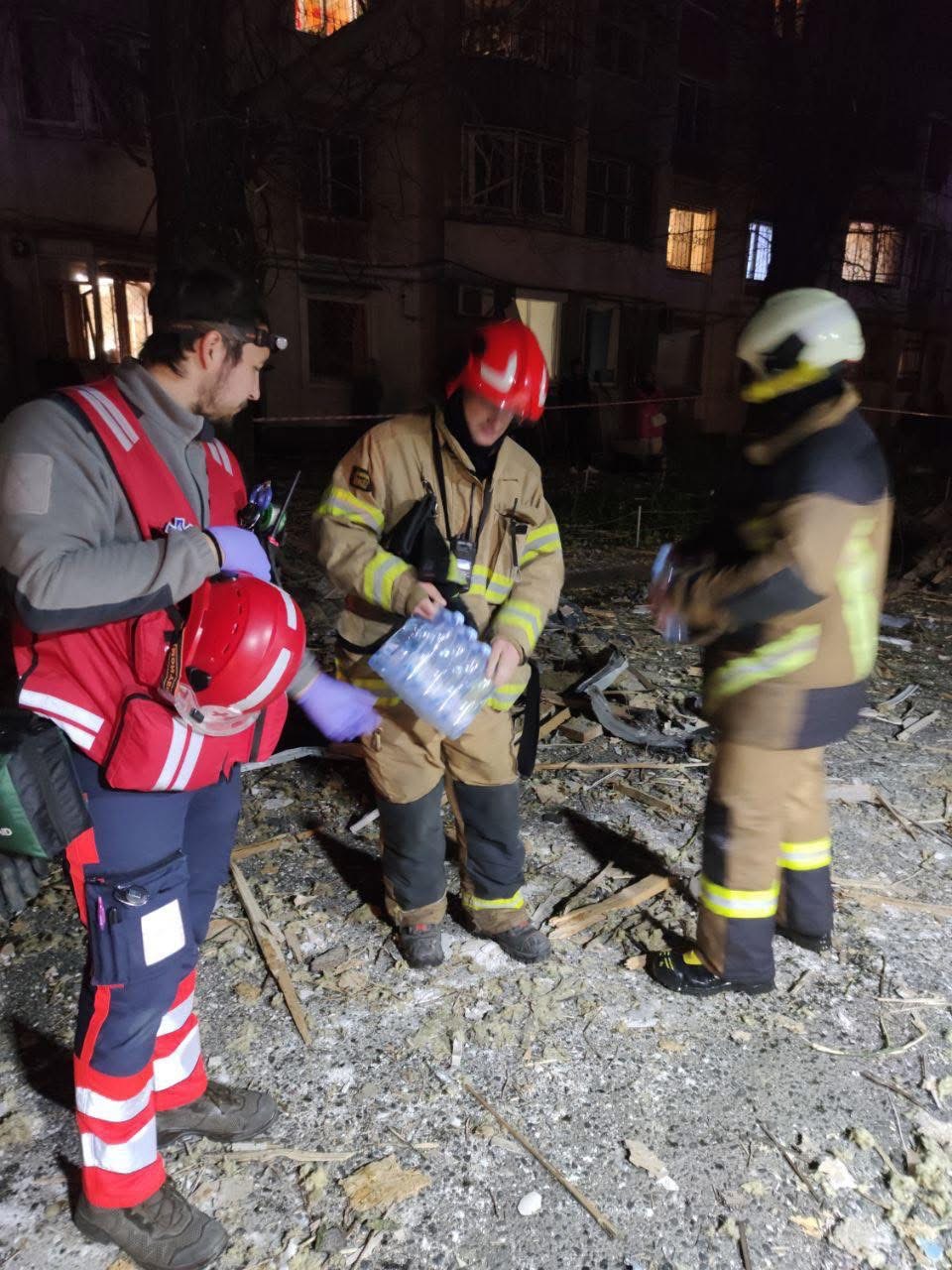 Загін швидкого реагування Українського Червоного Хреста в Одеській області цієї ночі допомагав на місці удару. Так, спільно з рятувальниками волонтери провели обхід пошкоджених будинків і прилеглих територій, надали першу допомогу 6 постраждалим та провели евакуацію пораненої людини до лікарні. Також на місці надавали першу психологічну допомогу людям у стані гострої реакції на стрес та забезпечували водою рятувальників.