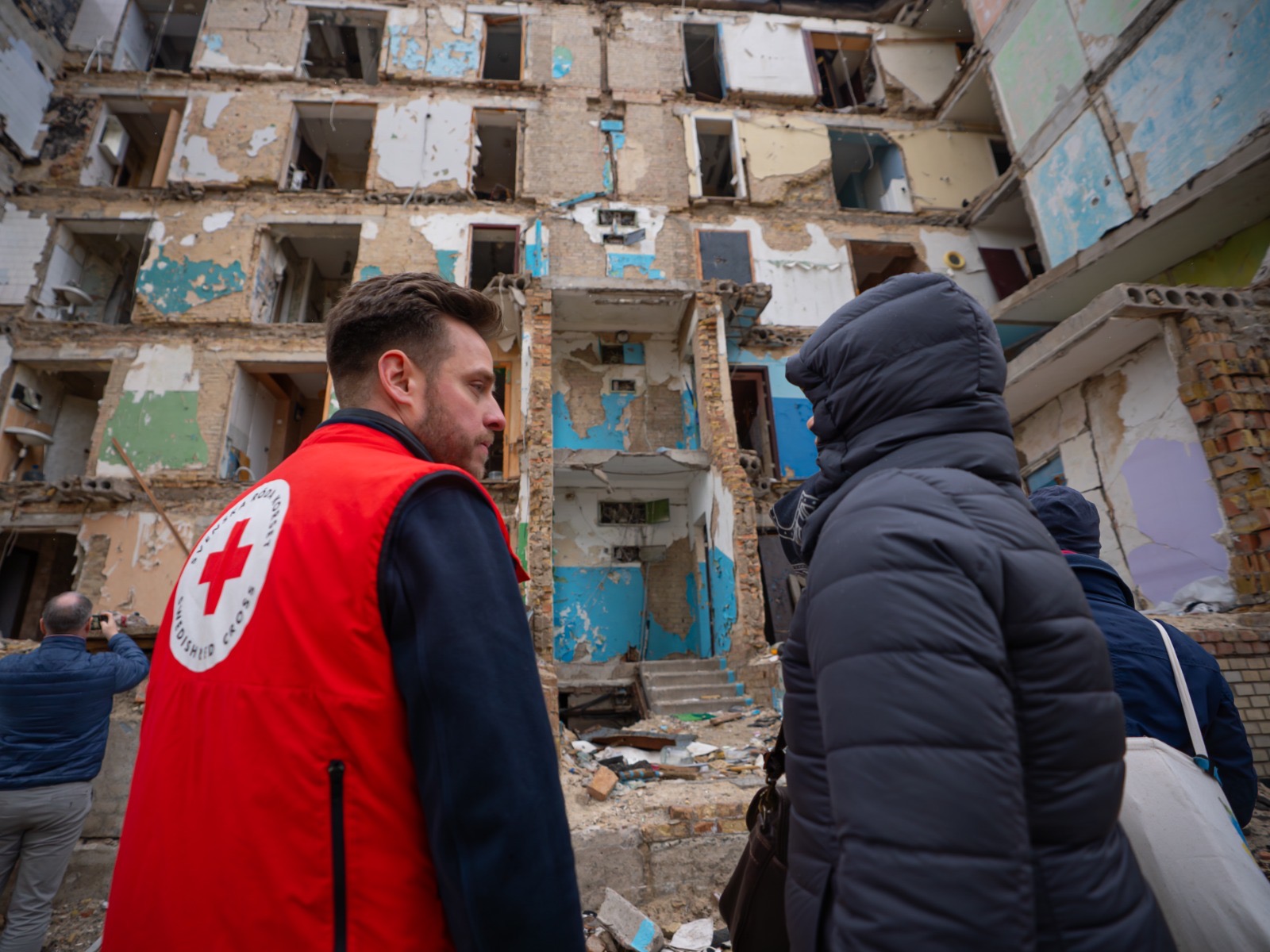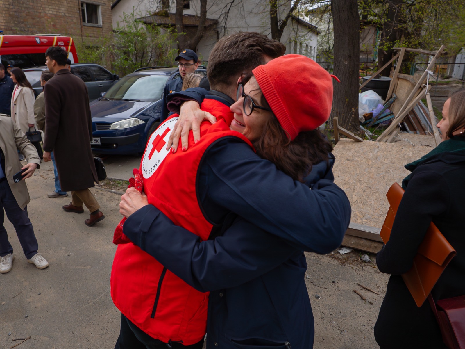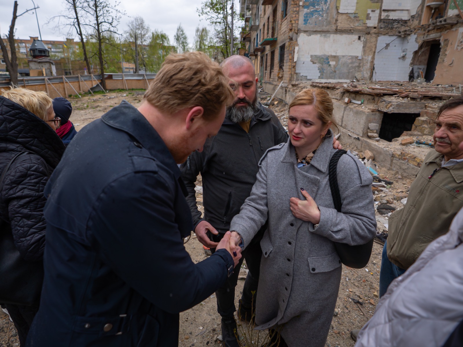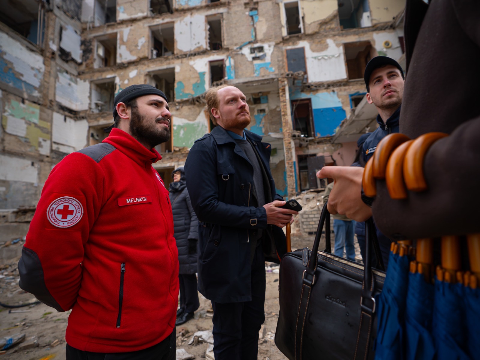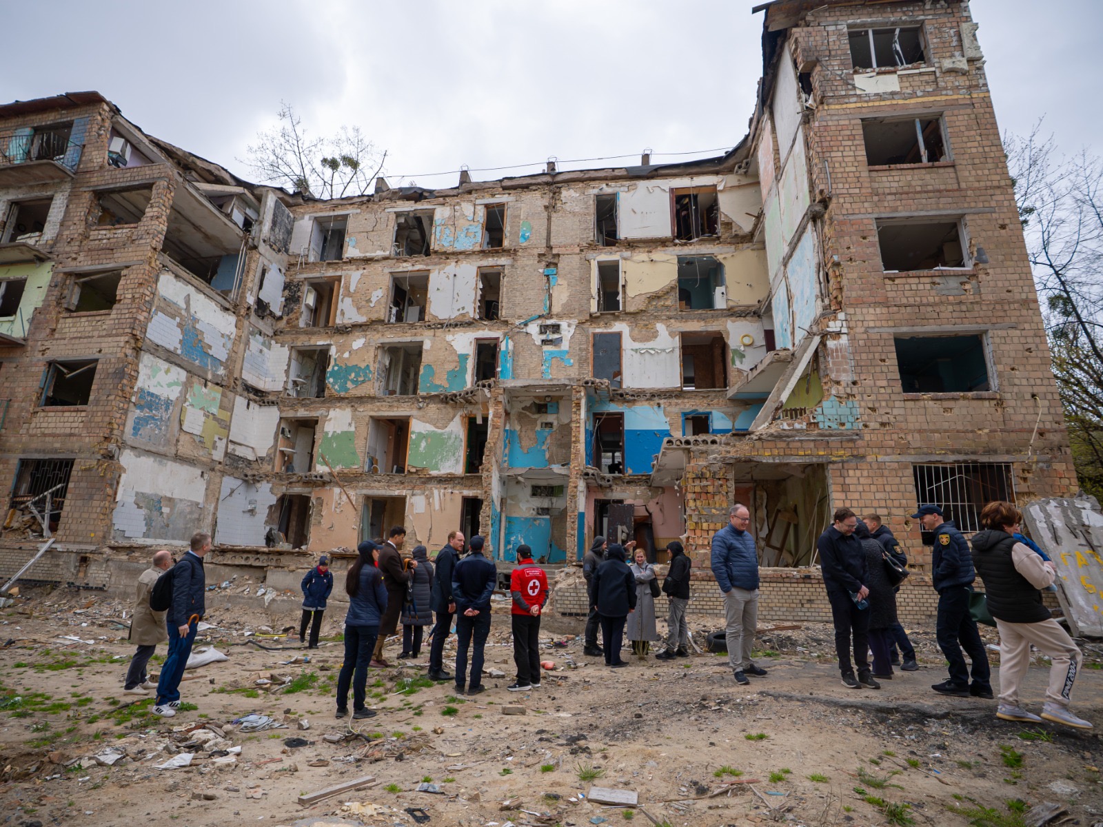 Також делегація відвідала локацію з пошкодженим житловим будинком, де поспілкувалася з мешканцями, які постраждали внаслідок обстрілу. Люди поділилися власними історіями та спогадами про одну з наймасованіших атак на Київ, а також досвідом отримання допомоги після неї. Серед них — жінка з немовлям, яка на момент влучання була вагітною та була врятована під час рятувальної операції.